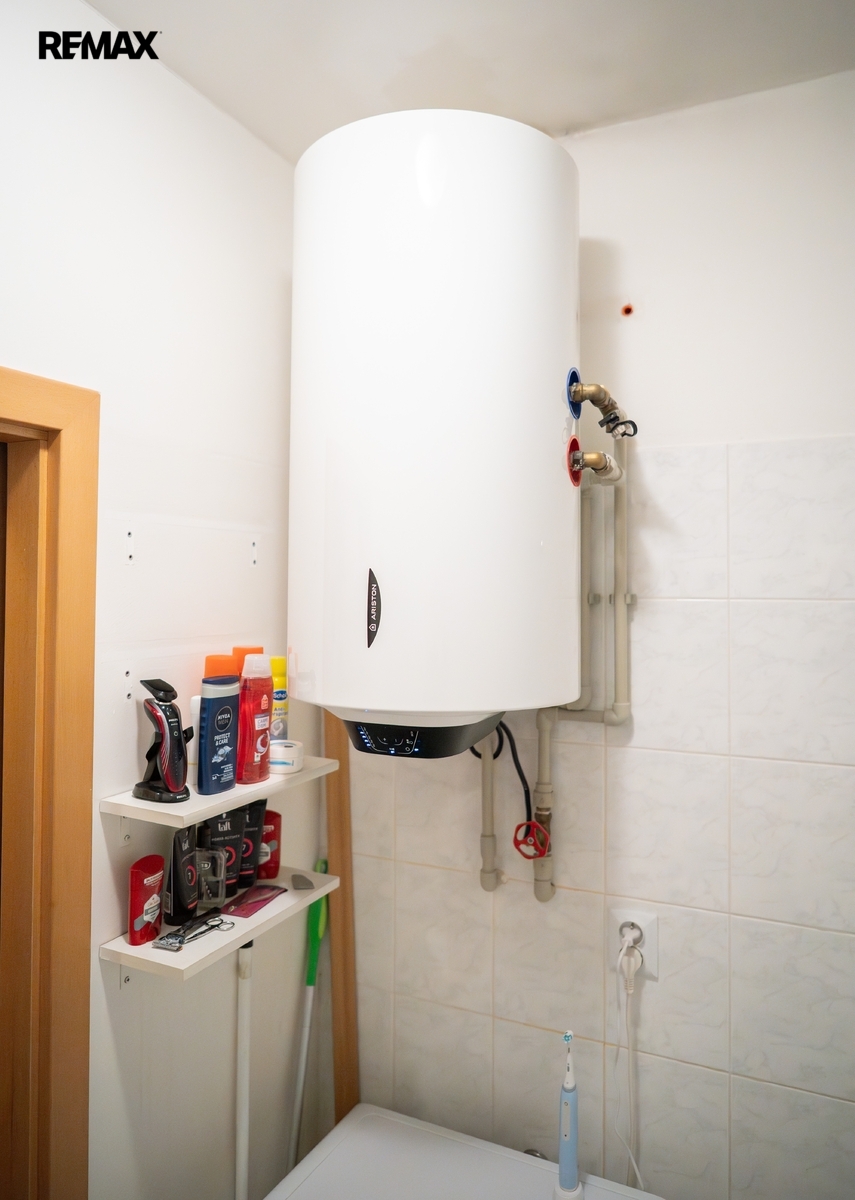 Vytápění je řešeno elektrickými přímotopy, ohřev vody zajišťuje vlastní elektrický bojler (80 l). K bytu náleží také sklepní kóje, která poskytuje další úložný prostor.