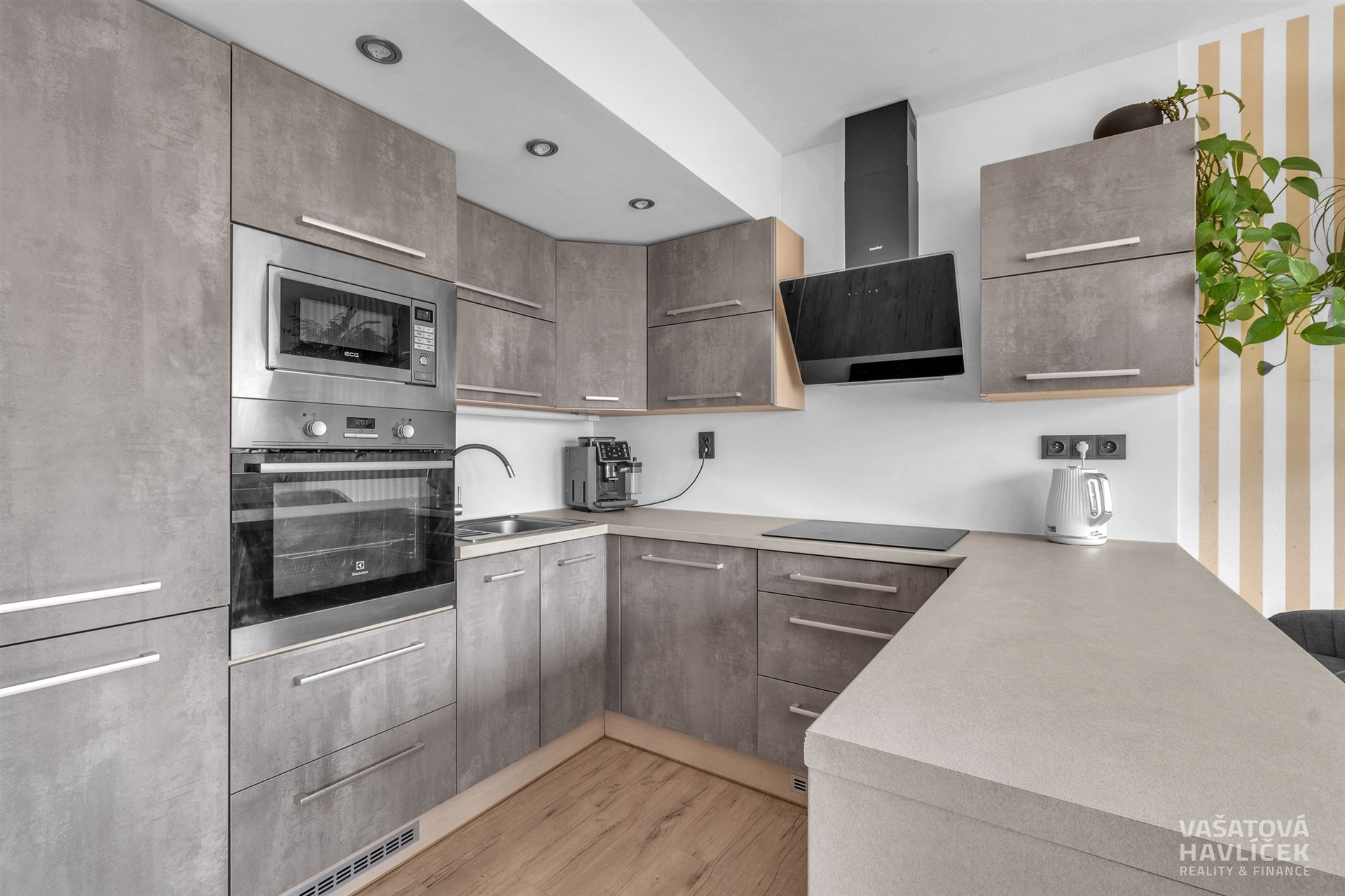 V bytě zůstává kuchyňská linka na míru s vestavěnými spotřebiči (nová digestoř a varná deska z roku 2023). Vstup do bytu je přes kvalitní bezpečnostní dveře pořízené v roce 2025.