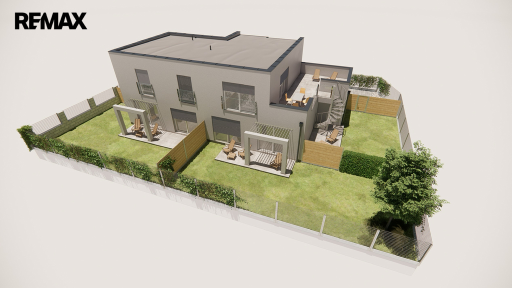 Byt disponuje dvěma terasami – horní přímo u bytu a spodní u zahrady – rozlehlá zahrada o velikosti téměř 100 m². Dalších téměř 100 m² zelené plochy náleží výhradně k bytu, což nabízí ideální prostor pro relaxaci, rodinné posezení i zahradničení.