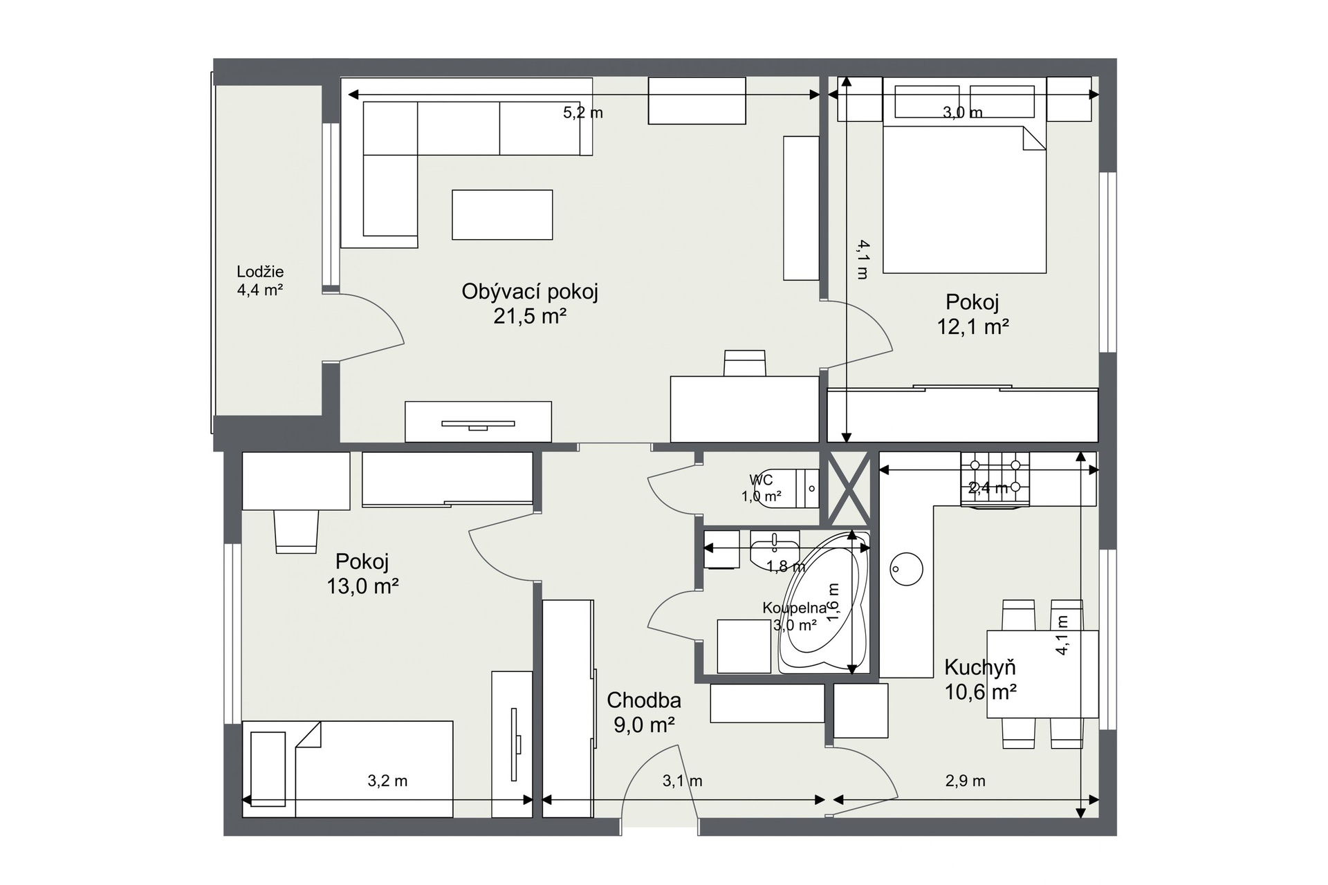 | Dispozice/podlahová plocha: | 3+1/79 m² |