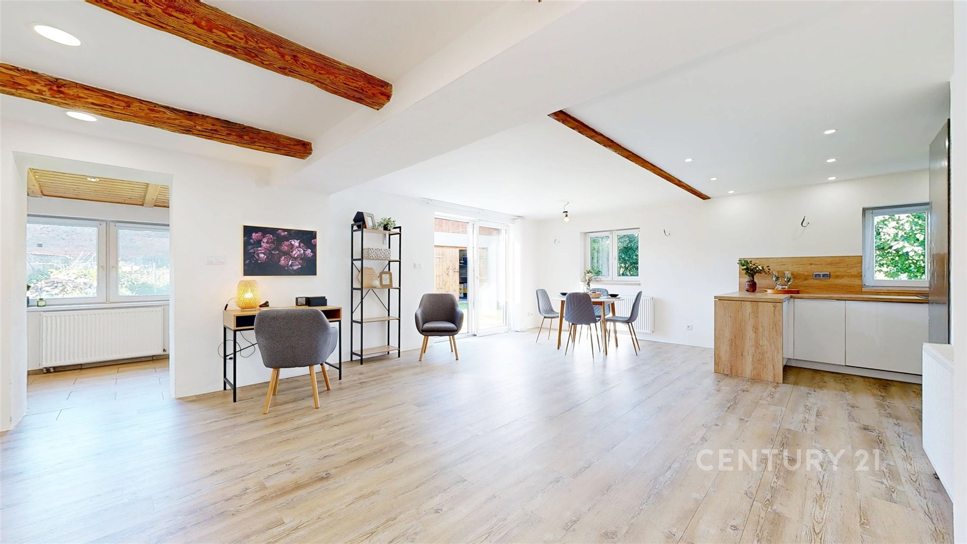 V přízemí domu se nachází prostorný pokoj s jídelní částí propojený s kuchyní a samostatný obývací pokoj, dále koupelna s oddělenou toaletou a technická místnost. V horním patře, které je přístupné po vnitřním schodišti, se nacházejí dvě útulné ložnice.