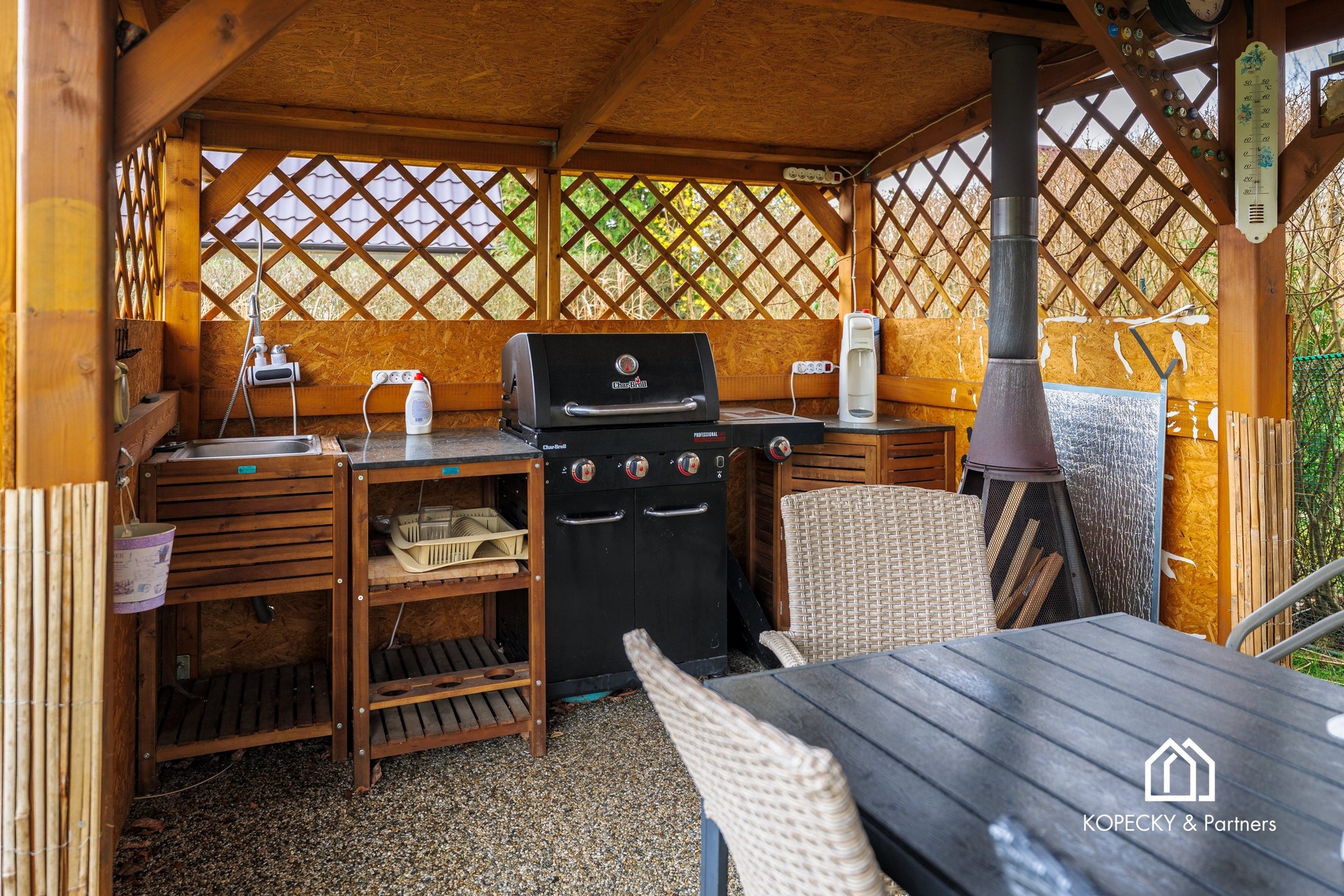 Příjemným doplňkem je také pergola umístěná vedle chaty, která přímo vybízí k posezení s rodinou či přáteli, letnímu grilování nebo klidnému odpočinku ve stínu. Samotná zahrada nabízí dostatek prostoru pro pěstování, relaxaci i další úpravy dle představ nového majitele.