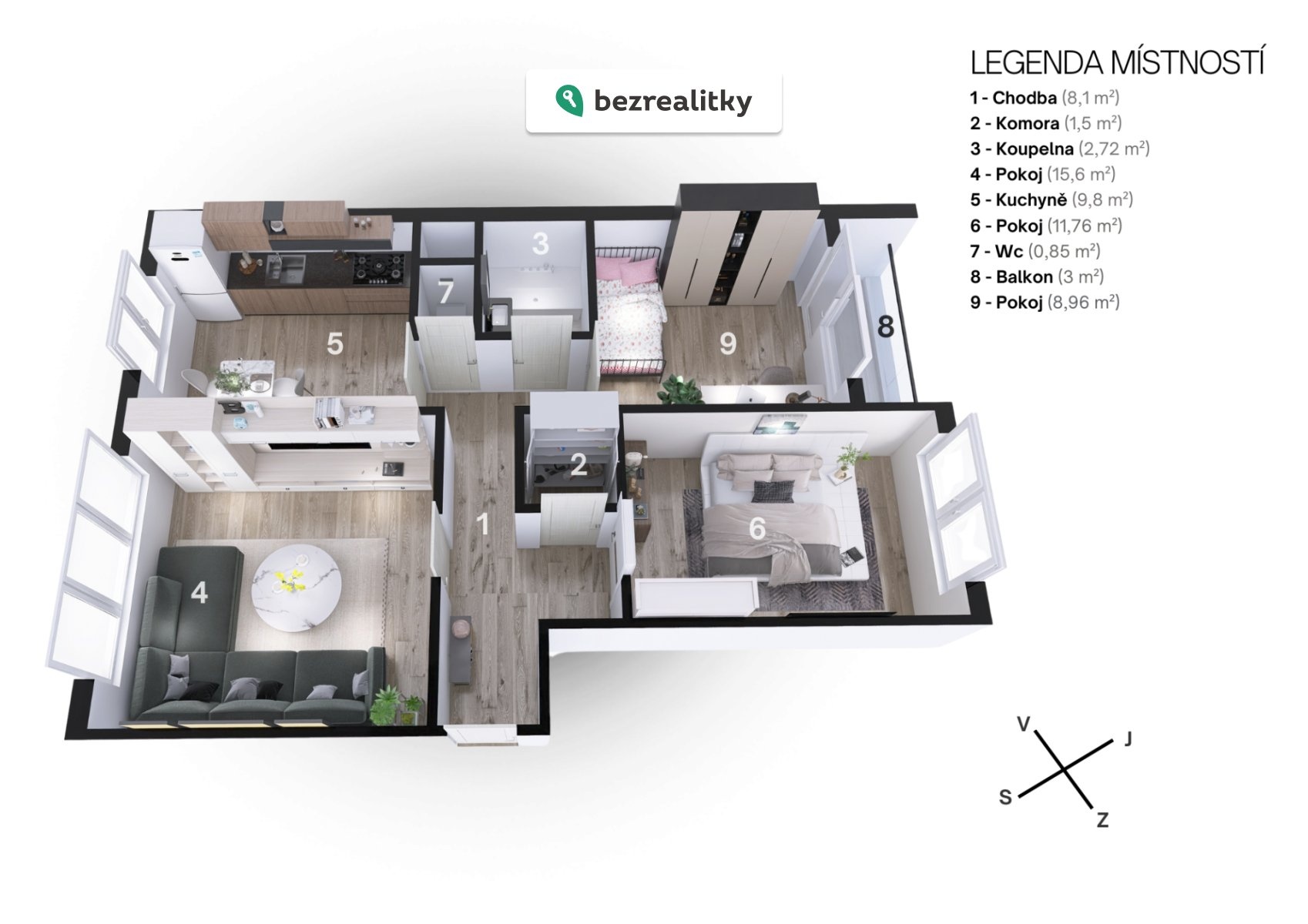 | Dispozice/podlahová plocha: | 3+1/63 m² |