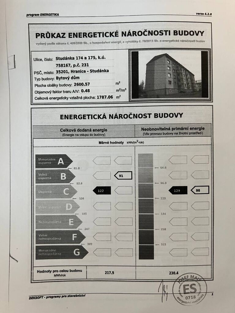 - Ukazatel energetické náročnosti budovy: 217.5 kWh/m²