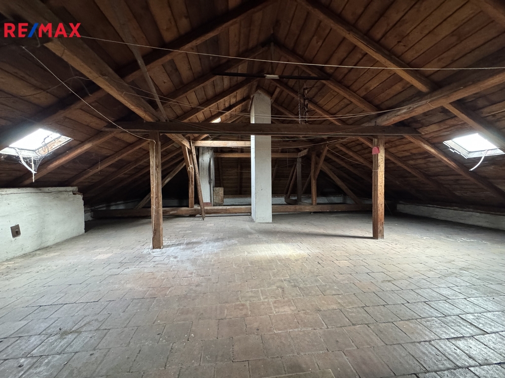 Dům je celopodsklepený (vyjma verandy) a má 2 samostatné byty, což umožňuje buď pohodlné vícegenerační bydlení, nebo kombinaci bydlení a pronájmu. Na obou patrech se nachází 2 podobně řešené byty s dispozicí 3+1, kde shodně najdete 3 pokoje (22,5 m², 22,5 m² a 22 m²), kuchyni (13,32 m²), komoru (6,6 m²), spíž, předsíň, záchod a balkon (3,78 m²). V podkroví/půdě se nachází pěkný udržovaný prostor, který může sloužit jako další byt, pracovna nebo ateliér. Celková plocha pozemku činí 1 377 m². Součástí je také prostorná dvojgaráž (42 m²) a rozlehlá zahrada (839m²), která nabízí dostatek prostoru pro relaxaci, rodinu i zahradničení. Dům je celkově v původním stavu před rekonstrukcí (vyjma oken v 2.NP, které jsou z roku 2023). Vytápění zajišťují zastaralé plynové kotle umístěné v jednotlivých bytech domu a ohřev TÚV v koupelně zajišťuje v 1.NP nefunkční karma a v 2.NP zastaralý plyn. bojler. Podlahová krytina obytných místností je pokryta zachovalými parketami; ve sklepech beton. Krytina střechy eternit.