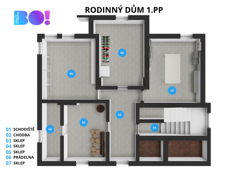 Vstupy jsou zcela oddělené – díky centrálnímu schodišti má každý byt vlastní vchod, což zajišťuje maximální soukromí i pohodlí.