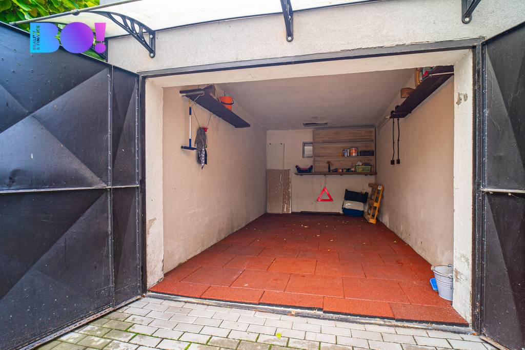 Na pozemku se nachází dvě garáže, k dispozici je také dostatek parkovacích míst přímo u domu.