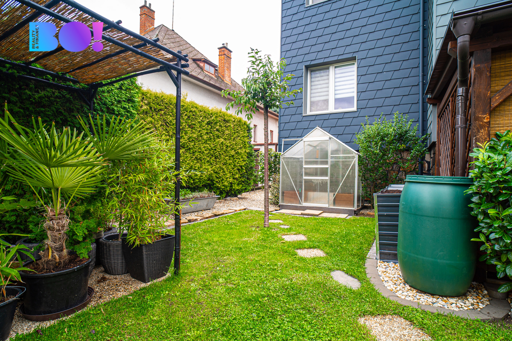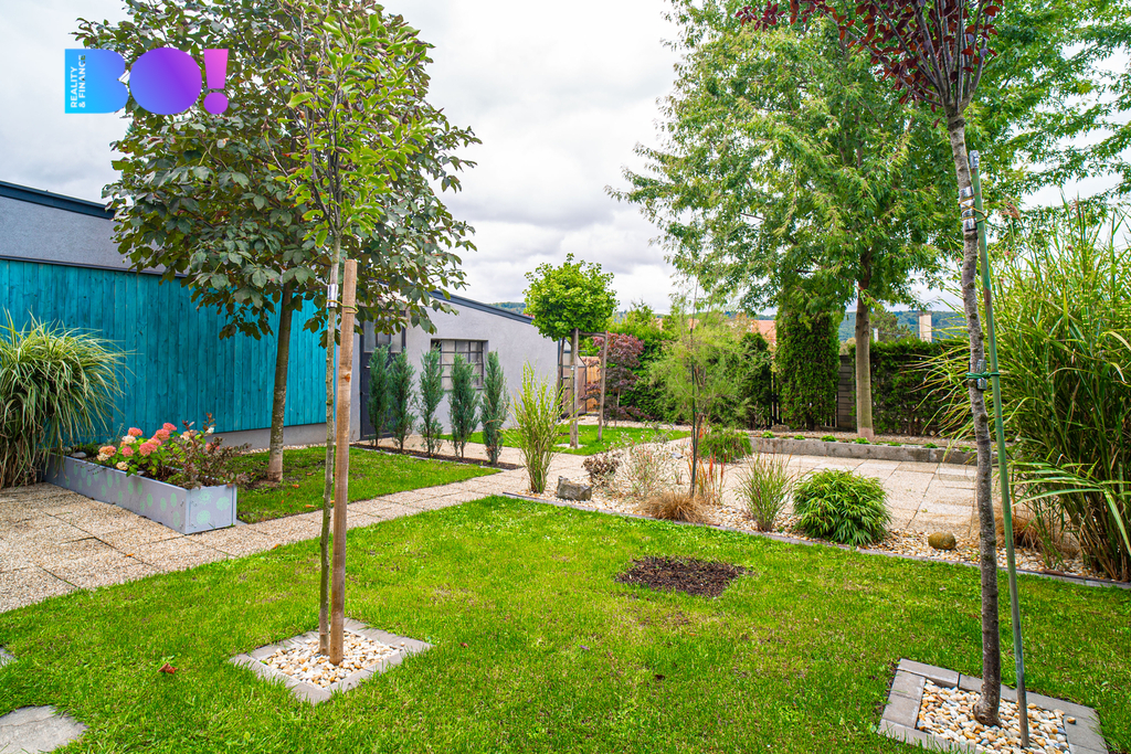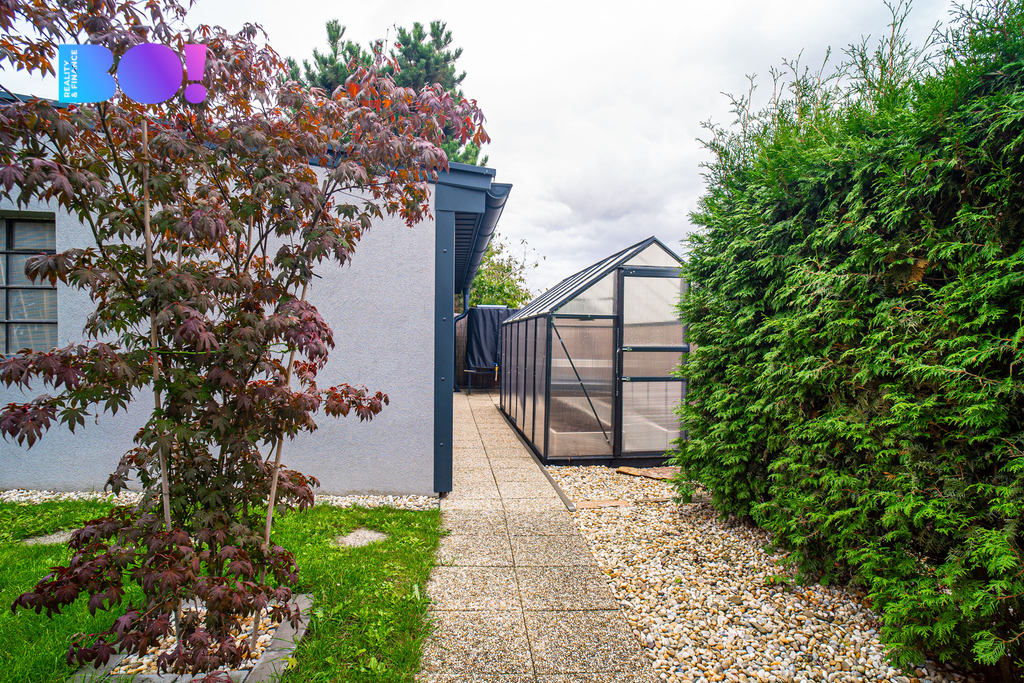 Celý dům stojí na rovném a slunném pozemku o velikosti 809 m², který nabízí mnoho možností využití – od zahradního posezení, výstavby pergoly až po malý bazén nebo dětské hřiště.