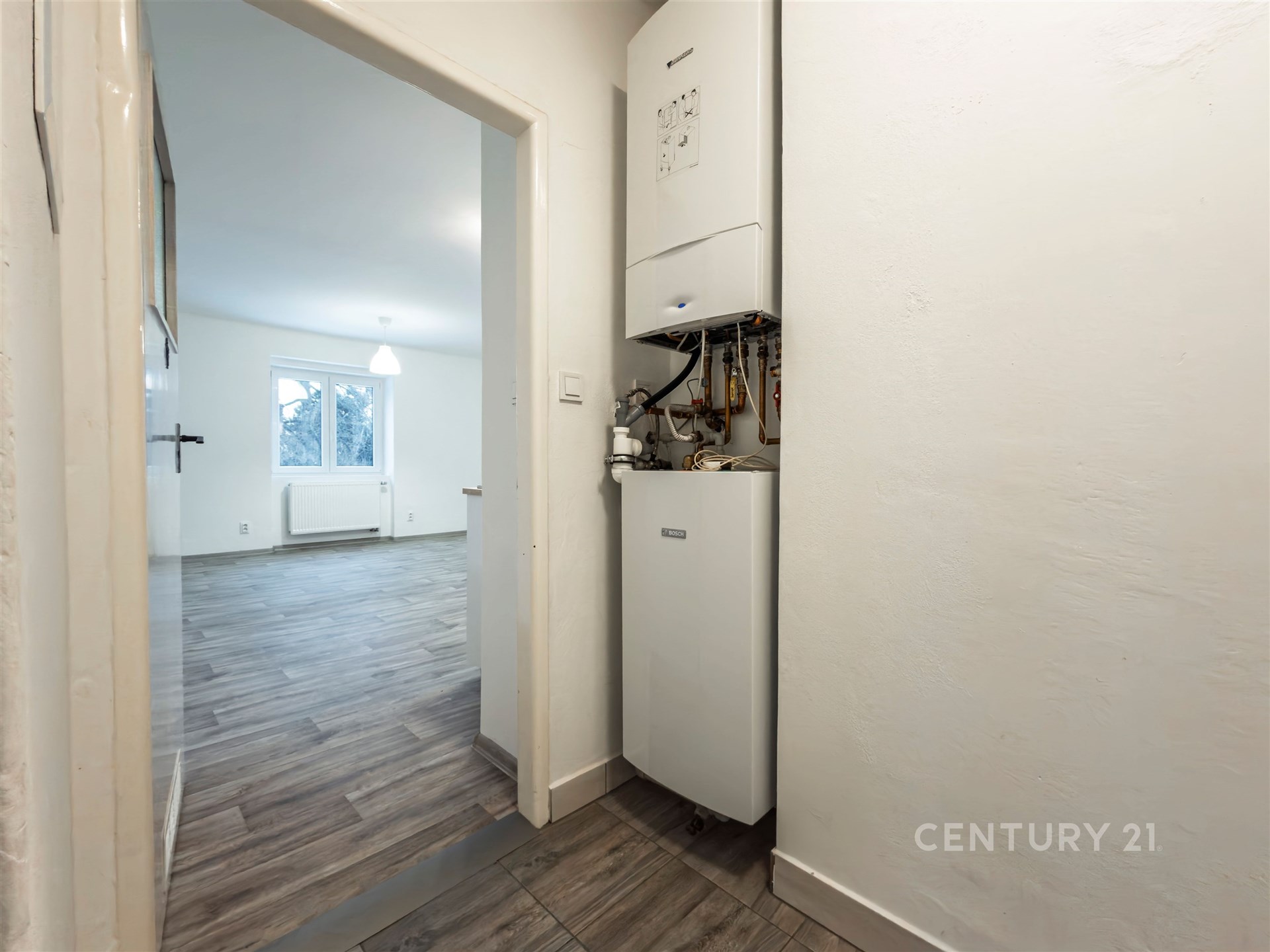 Byt nabízí prostornou vstupní chodbu s komorou, připojením na pračku, koupelnu s vanou, samostatné WC, vlastní plynový kotel i bojler, ložnici s francouzským oknem, dětský pokoj a obývacím pokojem s kuchyňským koutem.