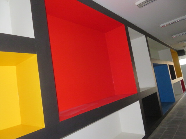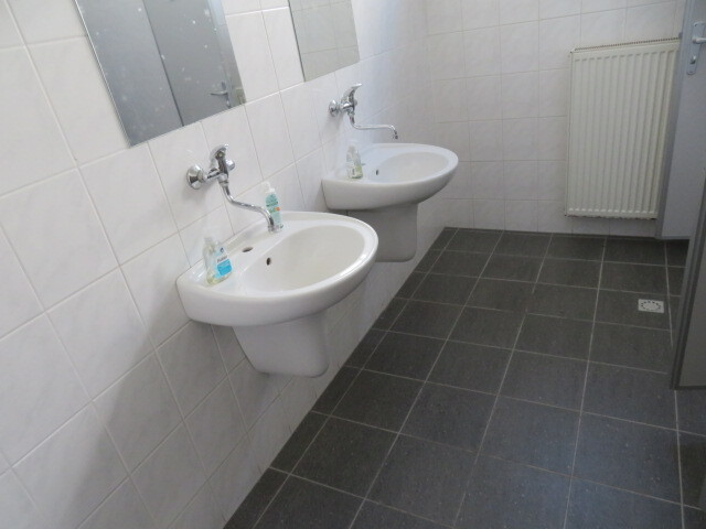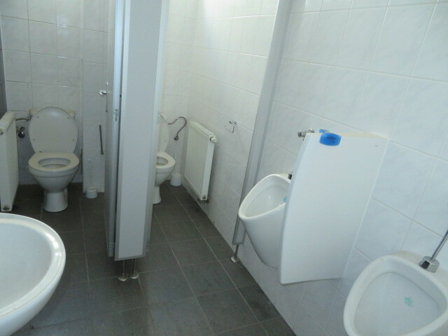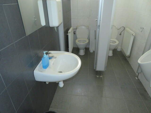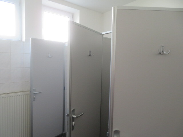 prosklené. Podlahy jsou pokryté keramickou dlažbou a koberci. Obklady jsou