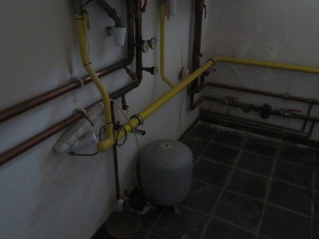 Přípojky nebylo možné ověřit. Vytápění je 3 plynovými kotli. Ohřev teplé vody