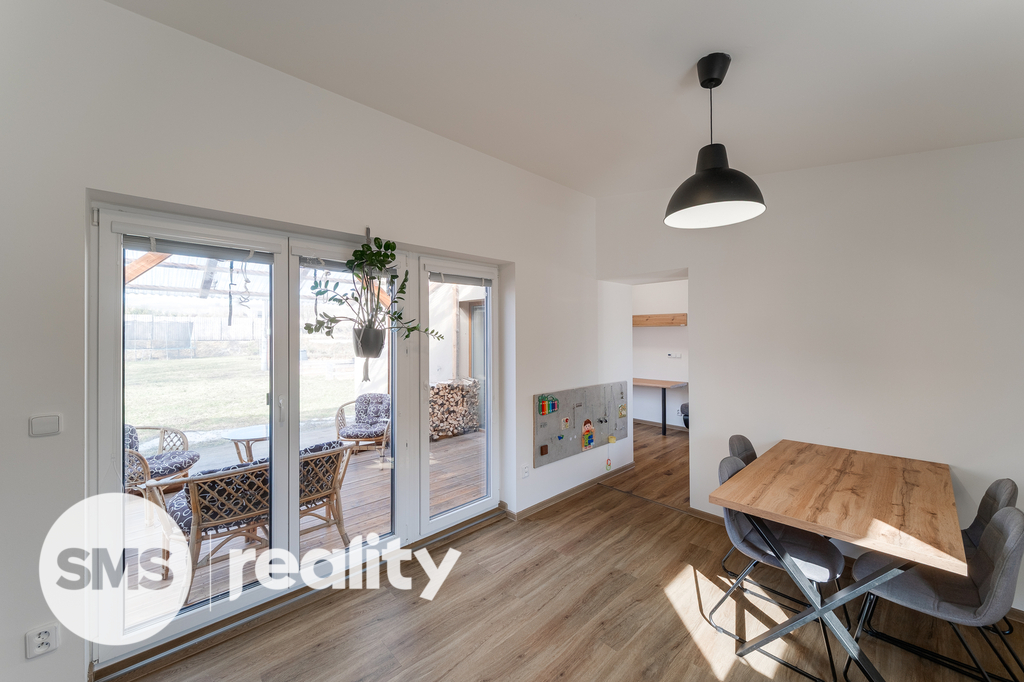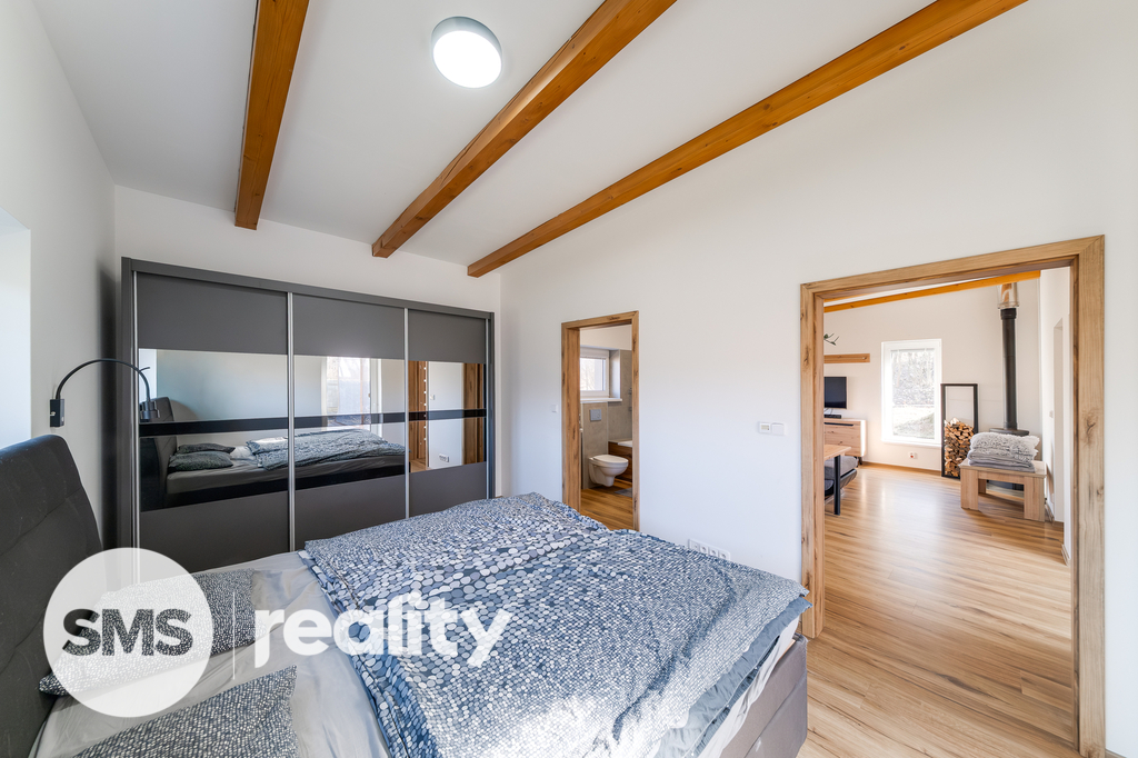Dům o užitné ploše 99 m² má praktickou dispozici 3+1, která odděluje zónu pro vaření od relaxační části. V obývacím pokoji jsou dominantou krbová kamna, která jsou ideální pro vytvoření útulné atmosféry během dlouhých zimních večerů a zároveň slouží jako efektivní zdroj tepla v kombinaci s podlahovým topením. Soukromé zázemí tvoří ložnice s přímým vstupem do vlastní koupelny s vlastní toaletou a vanou a další samostatný pokoj, přičemž v domě naleznete ještě druhou, samostatnou koupelnu pro maximální komfort všech členů domácnosti.