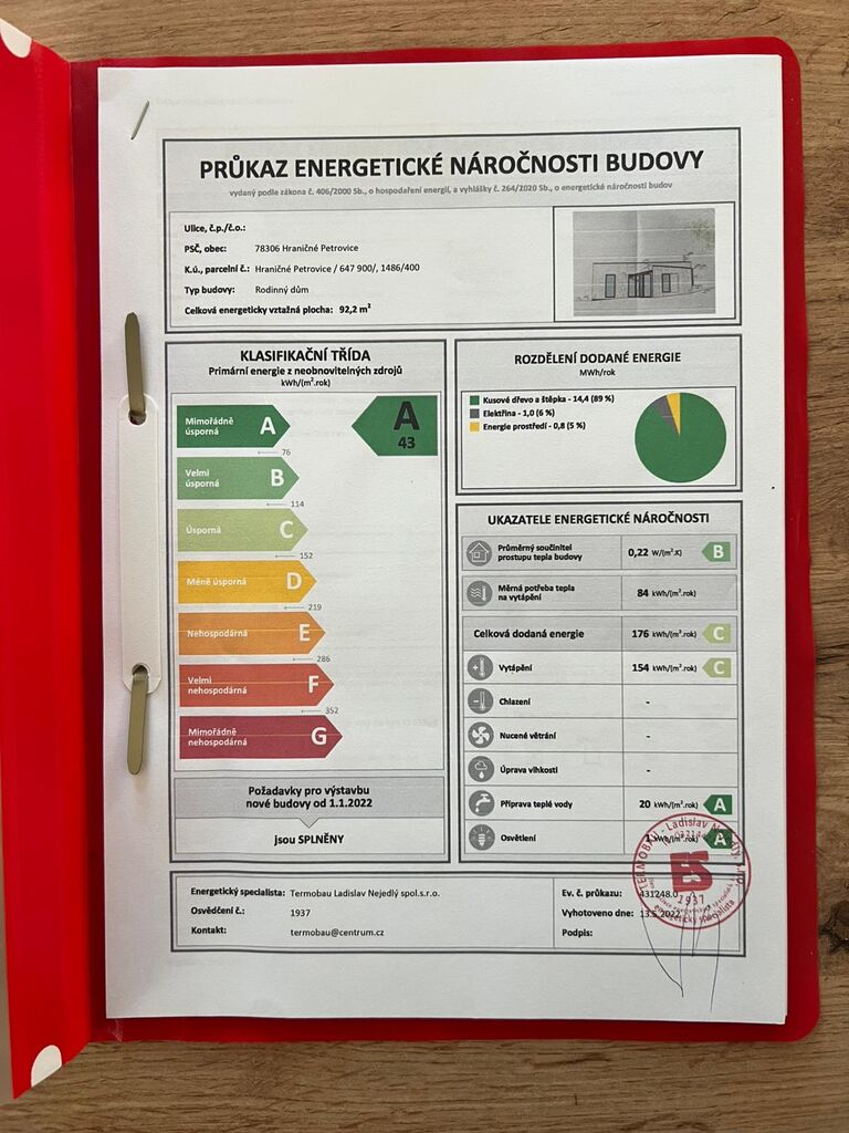 - Energetická náročnost budovy: A - Mimořádně úsporná