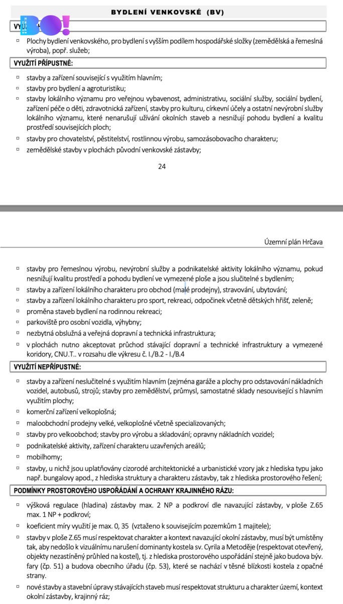 Z.6-Bydlení venkovské-Plocha vymezena v platném zastavěném území, s přímým napojením na stávající dopravní a technickou infrastrukturu.