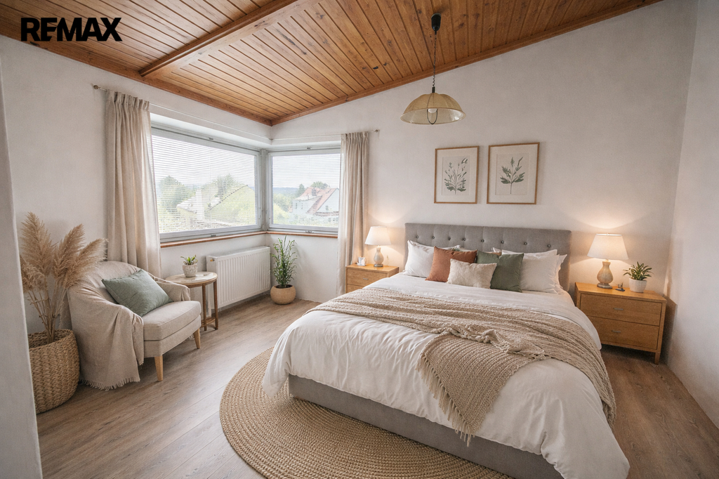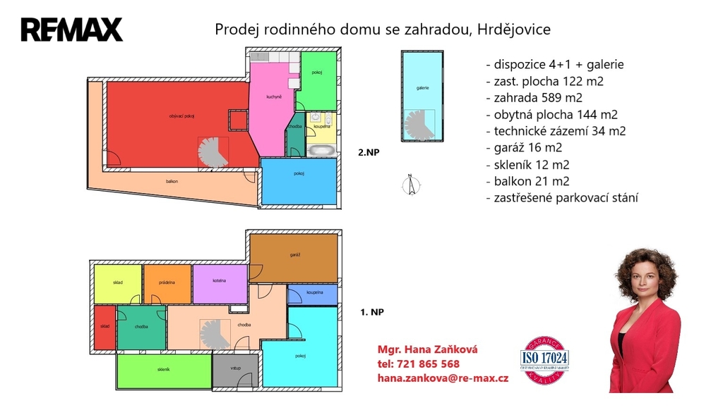 Obytná část je dispozičně řešena jako 4+1 o obytné podlahové ploše 144 m2 + technické zázemí 34 m2+garáž 16 m2 + skleník 12 m2+ balkon 21 m2.
