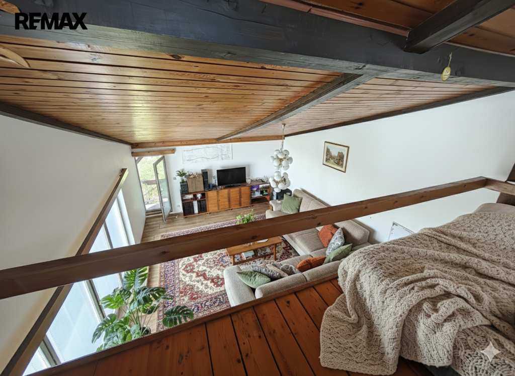 Točitými schody z obývacího pokoje je přístupná galerie nad obývacím pokojem (12 m2).