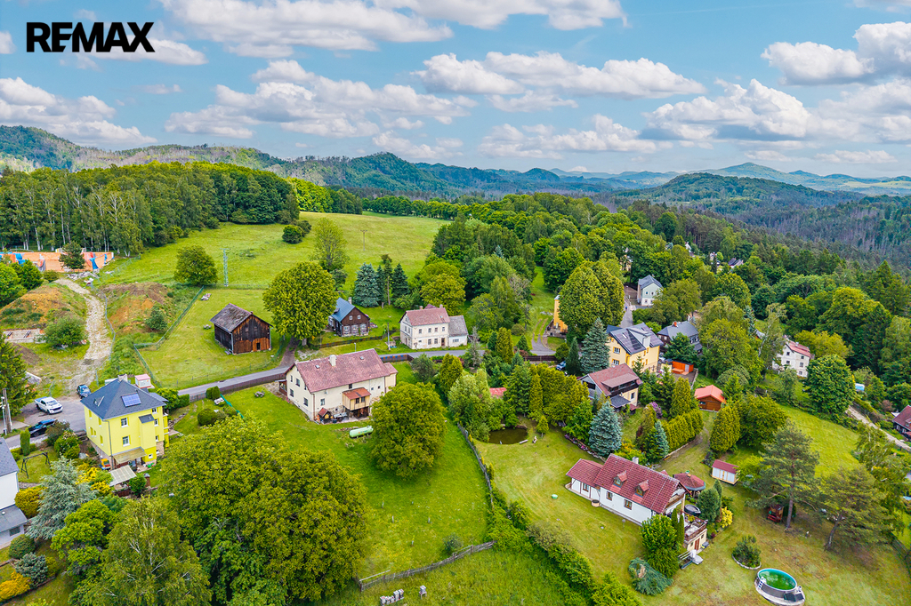 Nemovitost o dispozici 7+1 s rozlehlým pozemkem v obci Mezná u Hřenska
