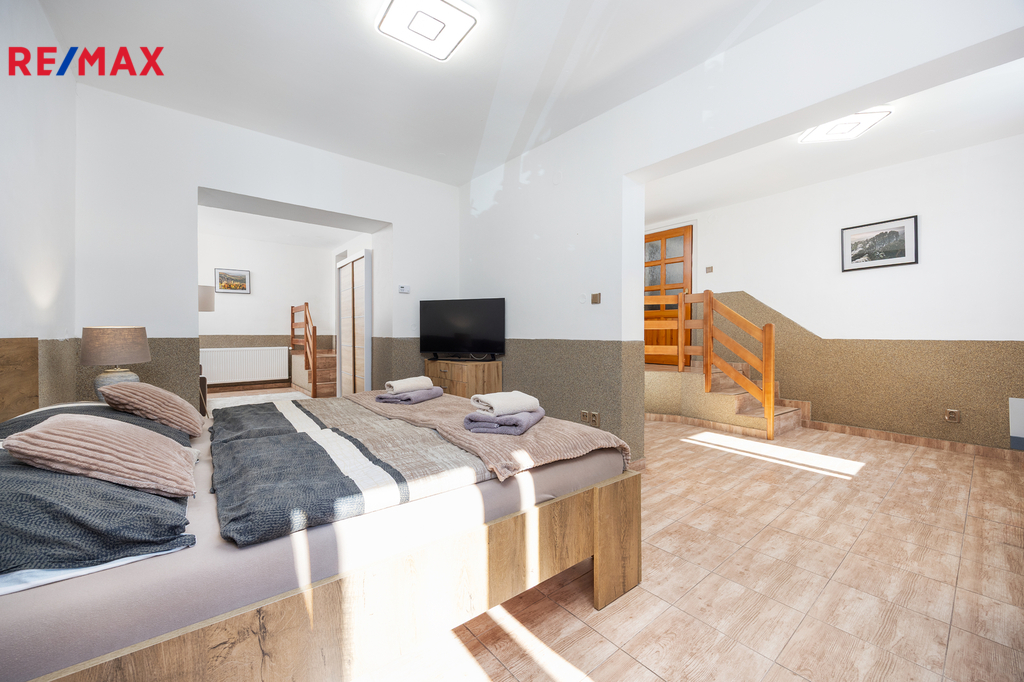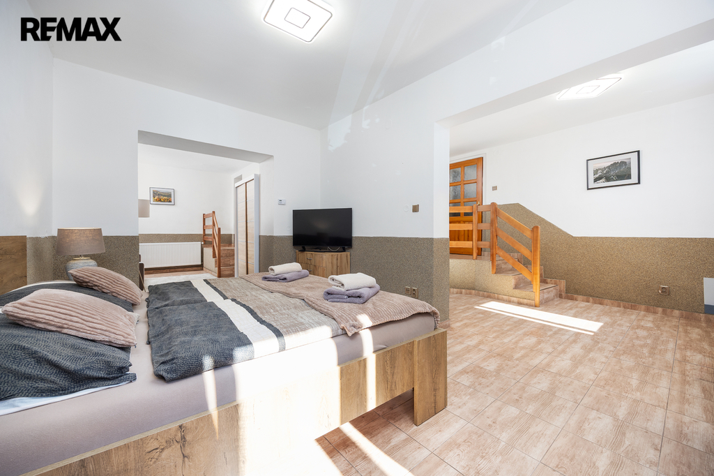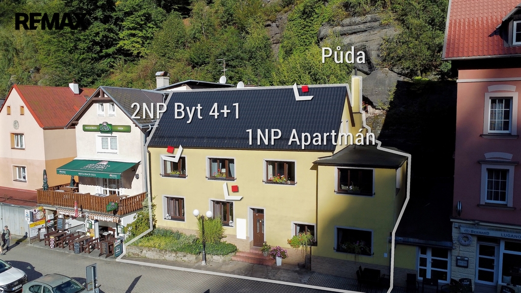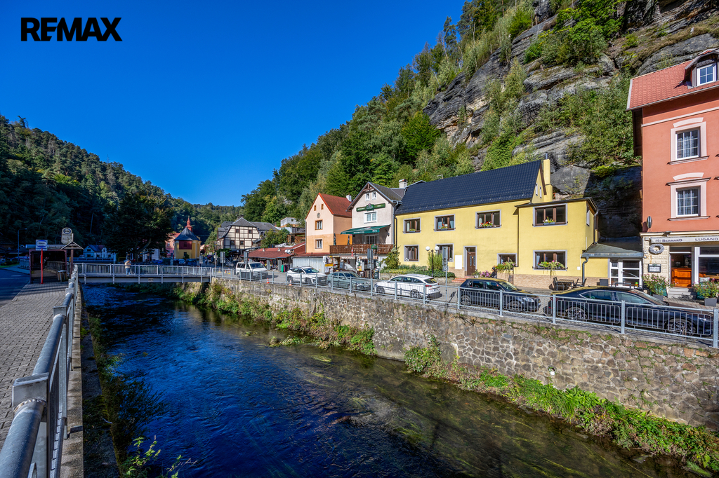 Komfortní bydlení, podnikání v srdci turistické destinace, nebo kombinace obojího? Tento dvoupodlažní dům v centru Hřenska nabízí jedinečnou příležitost spojit vlastní bydlení s podnikáním a stabilním výnosem z pronájmu apartmánu. Navíc lze v domě vybudovat až tři další apartmány, čímž se výrazně navyšuje investiční potenciál.