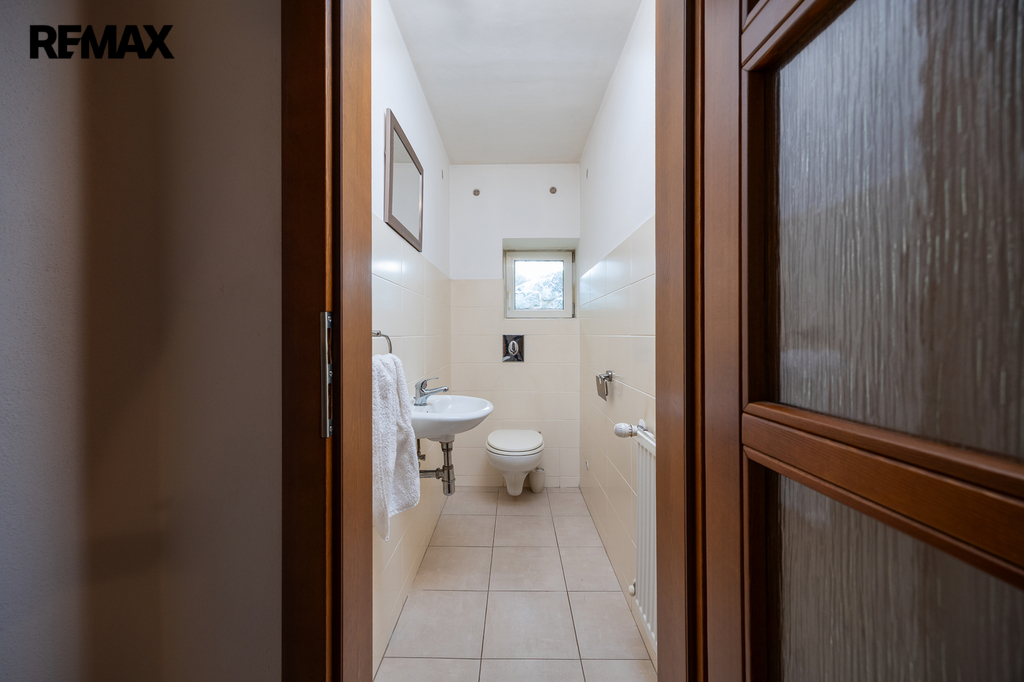 1. nadzemní podlaží: útulný apartmán, komerční a skladové prostory, samostatné WC a technické zázemí.