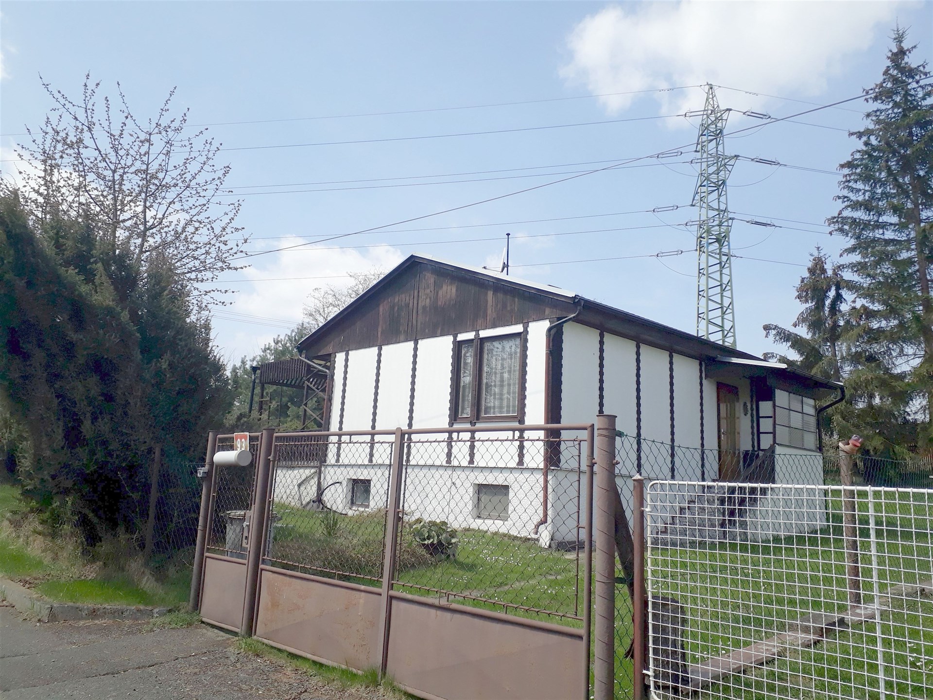Přes okraj pozemku vede elektrické vedení.
