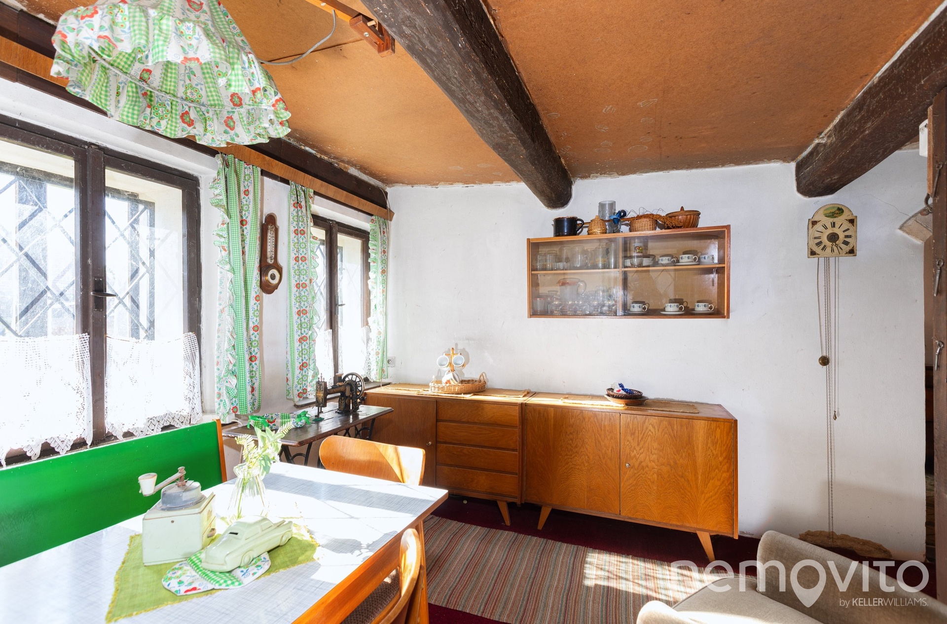 Dispozice obytné části je 1 plus 1 plus kamna. Plocha k vegetování je tak 52 m2, které doplňuje jedna provizní koupelna v užitkové části domu, kterou tvoří stodola. V podkroví naleznete další dva pokoje, nečekejte však nic honosného. Ve starém domě nemůže chybět ani klenutý sklípek a hromada prostoru na půdě.