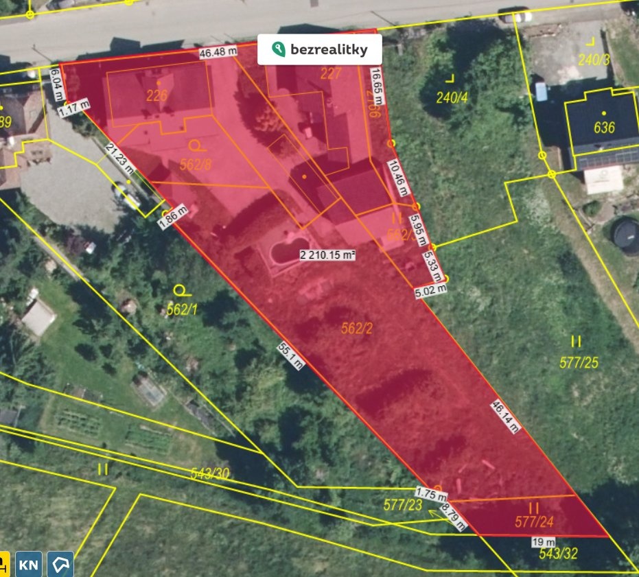 - Plocha parcely: 2210 m²