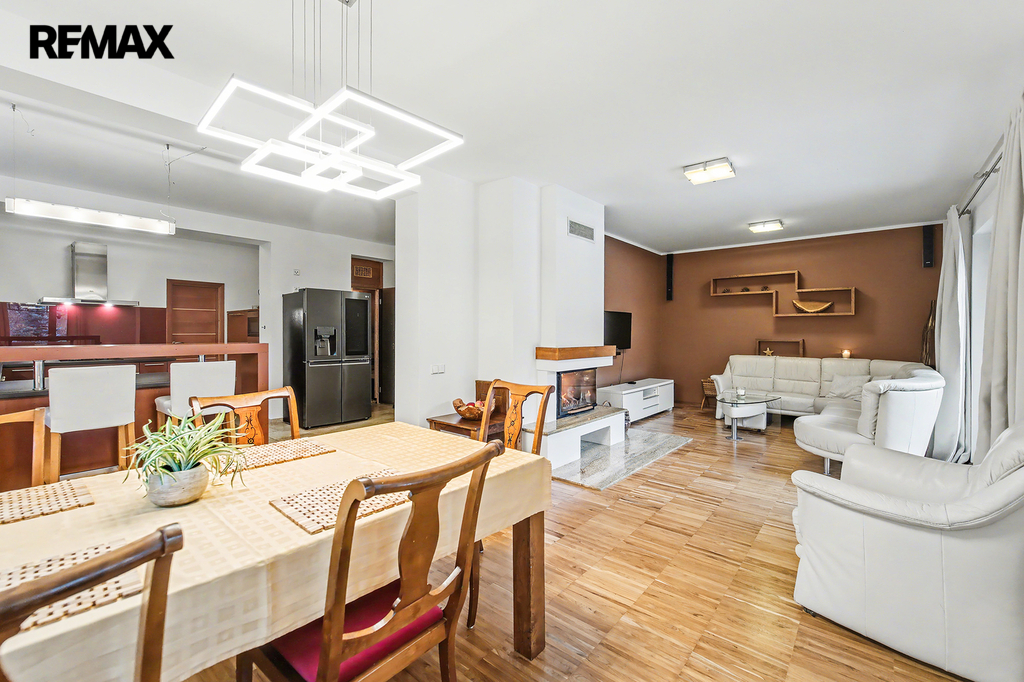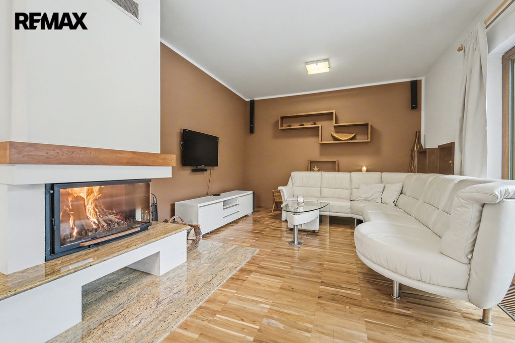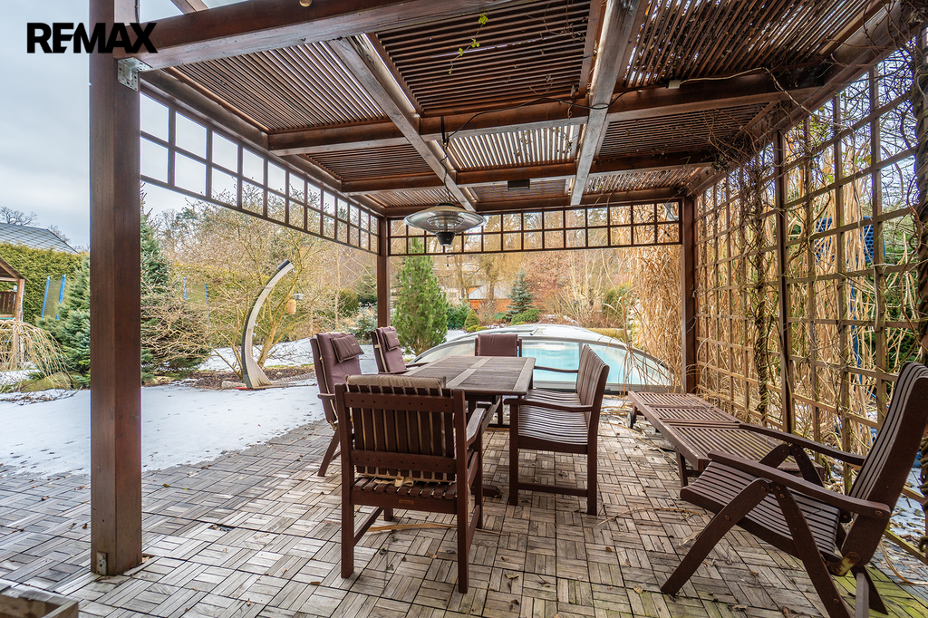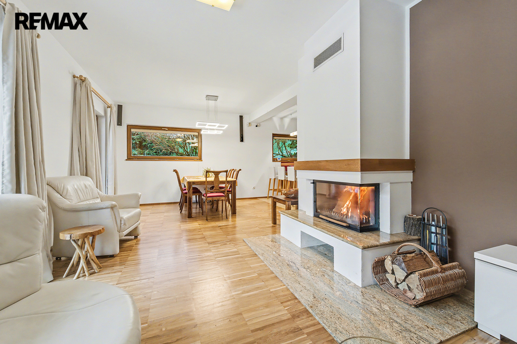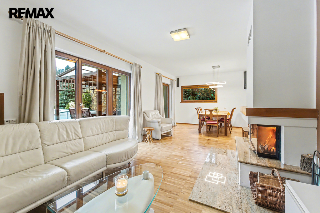 • Společné chvíle u krbu a na terase: Vaše rodina bude trávit společné chvíle u jídelního stolu v obývacím pokoji s krbem. Za hezkého počasí si můžete obytný prostor rozšířit o navazující terasu s posezením pod pergolou.
