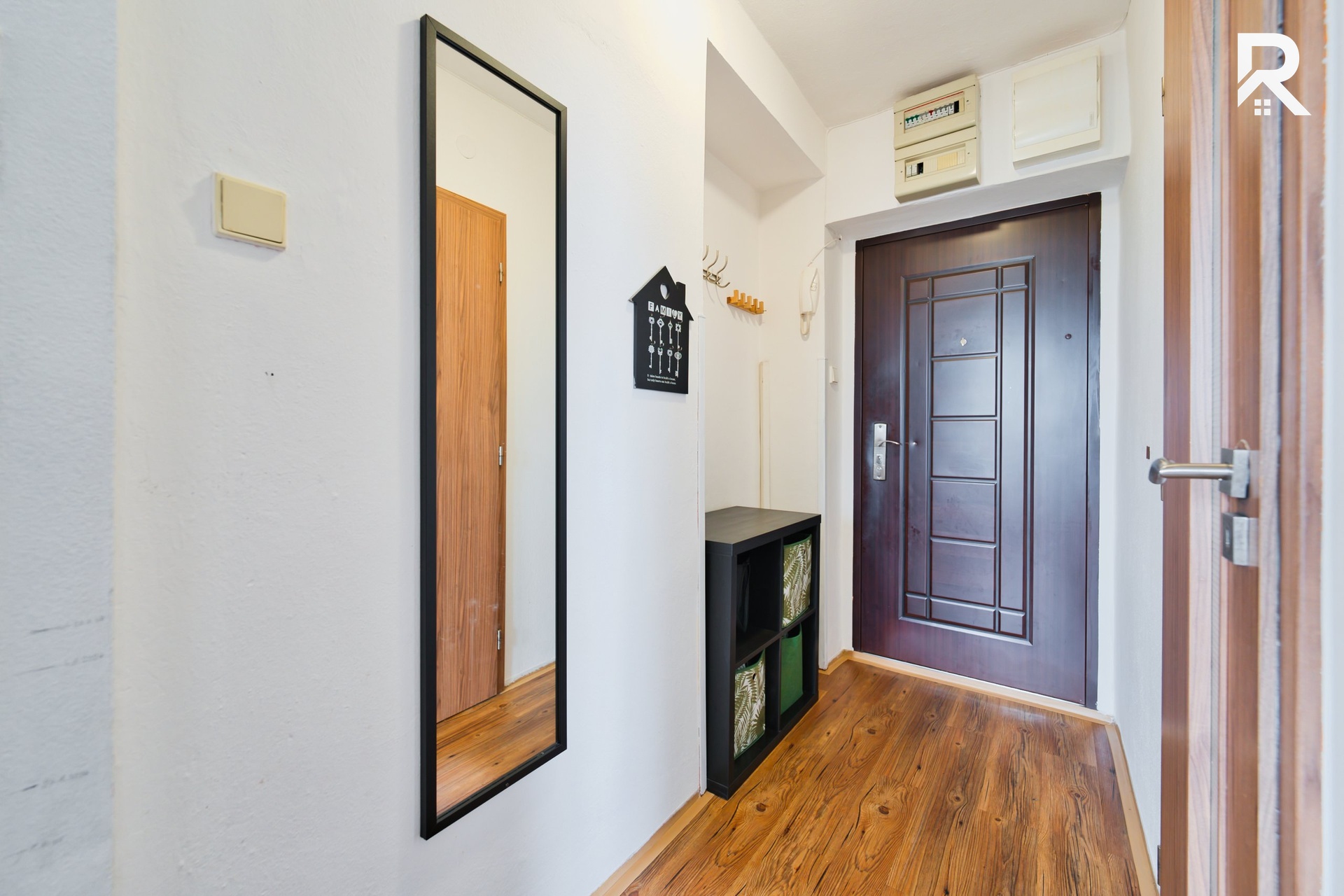 Při příchodu do bytu se ocitnete v předsíni, která Vás přivítá ve Vašem novém domově. Hned při vstupu na Vás čeká šikovně řešená koupelna s WC a vanou po zdařilé rekonstrukci. Z předsíně se pak plynule dostanete do obývacího prostoru s kuchyňským koutem, kde je Vám linka plně k dispozici včetně spotřebičů jako je například sklokeramická deska vč. trouby či vestavěná myčka Bosch. Zbyde zde také dostatek místa na jídelní kout i lednici. Nemovitost také poskytuje 2 samostatné ložnice, které si můžete do vybavit dle Vašich představ.