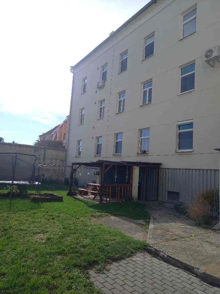 Obyvatelé domu mají k dispozici i zatravněný prostor ve dvorním traktu domu, kde je možnost posezení a volnočasového vyžití pro děti.