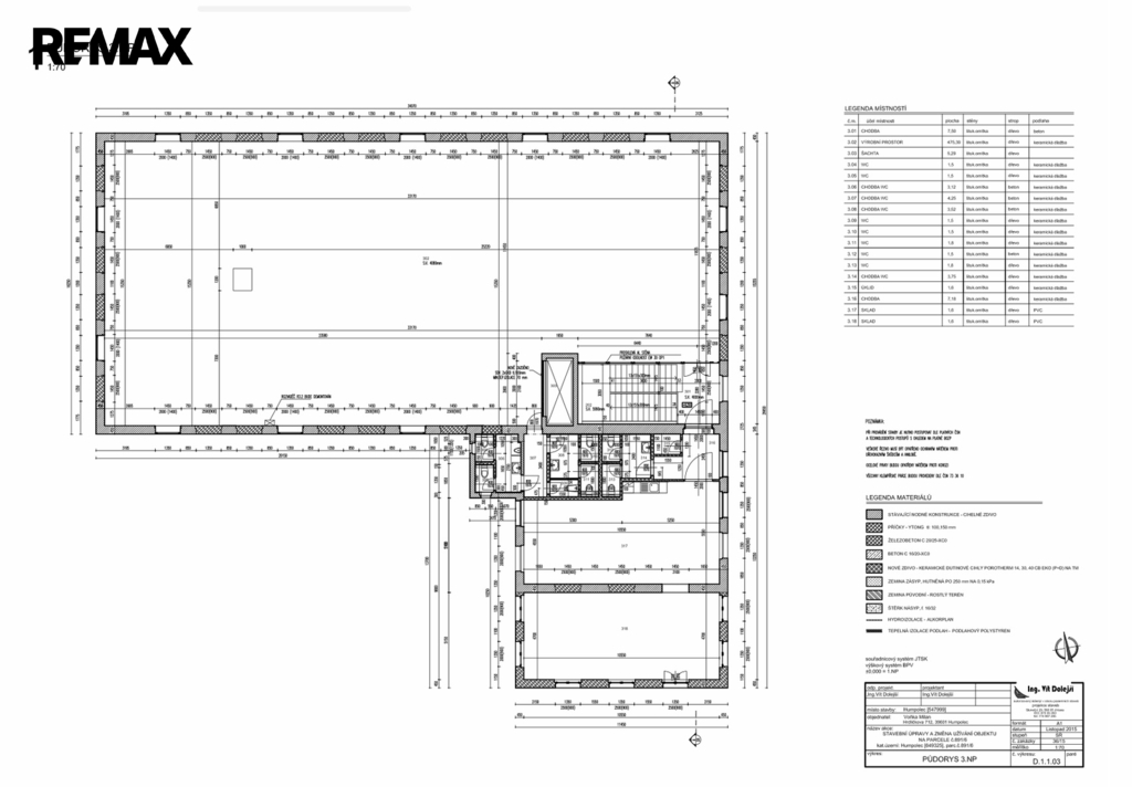 se zatížením 500 kg/m2 o výměře 472 m2, schodiště o výměře 24 m2, kancelář č. 1 o výměře 58 m2,