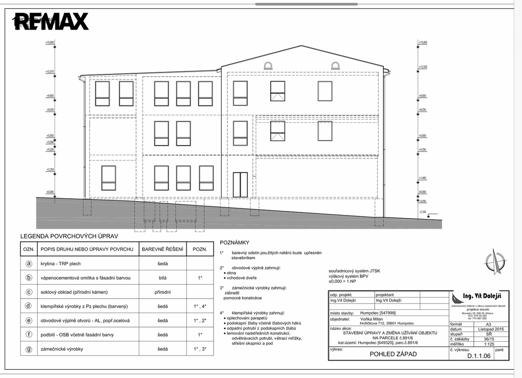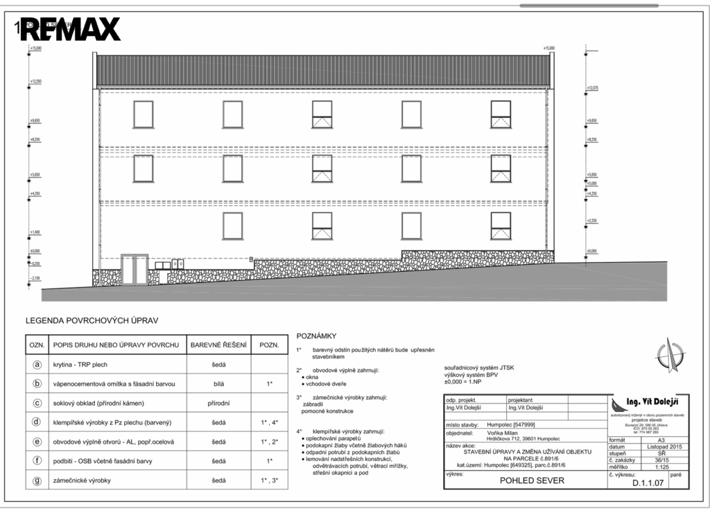 Kompletní projektová dokumentace bude k nahlédnutí při osobní prohlídce na nemovitosti.