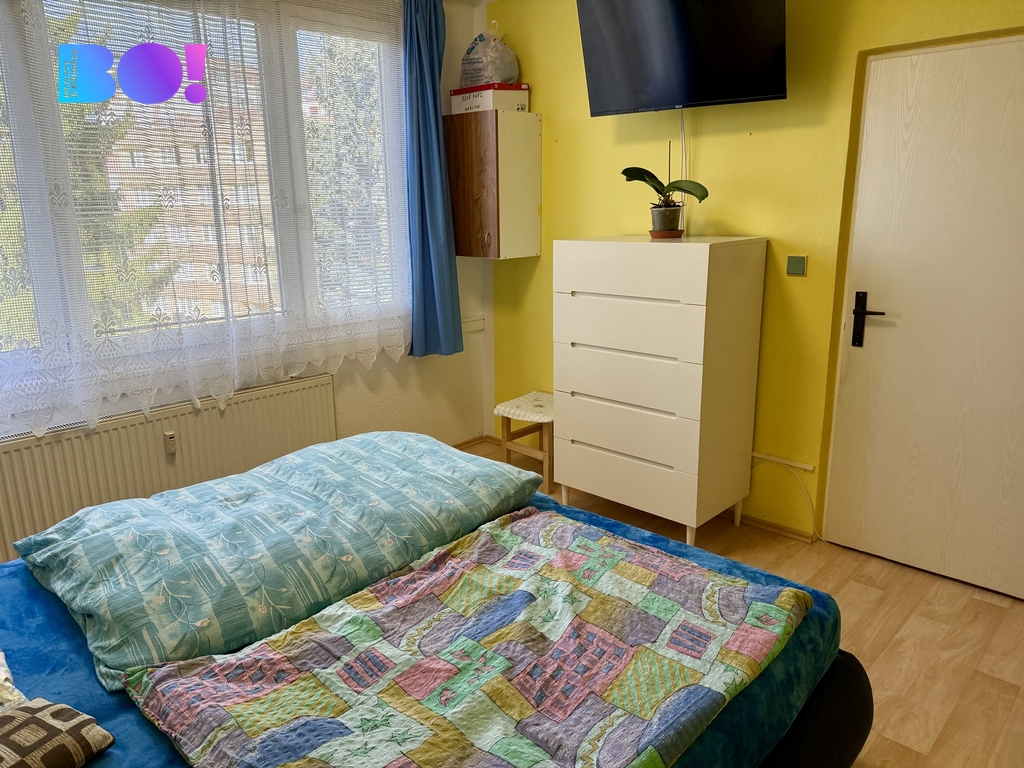 Byt s lodžií se nachází ve čtvrtém nadzemním podlaží bytového domu s výtahem, který má celkem devět nadzemních podlaží. Podlahová plocha bytu je 66 m², k tomu prostorná lodžie a sklepní kóje. Byt je v původním, ale zachovalém stavu. Vyměněná plastová okna, kuchyňská linka, rozvod vody.