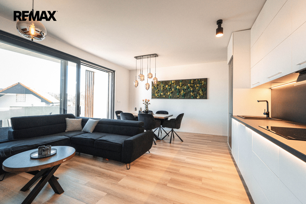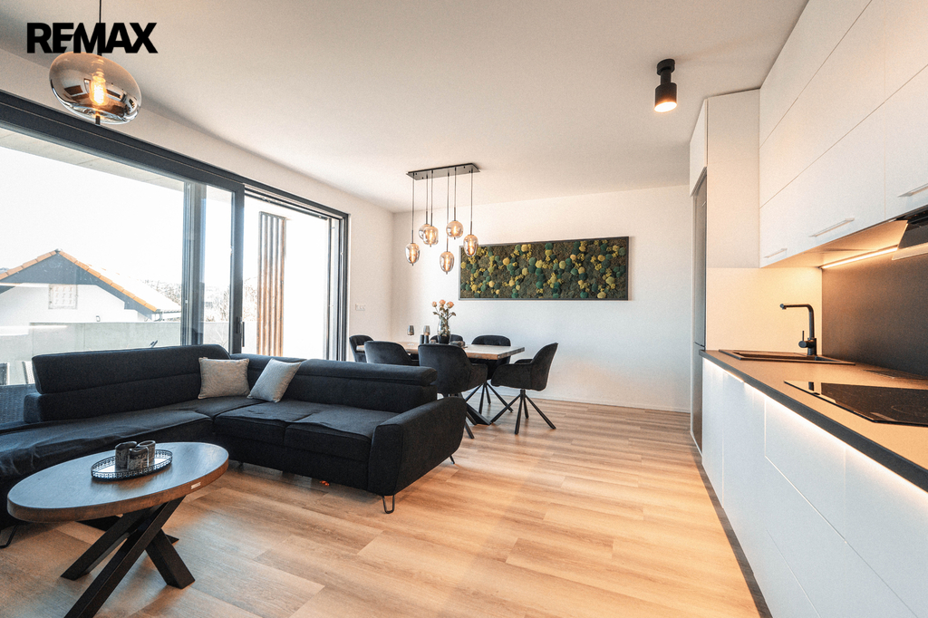 Kompletní vybavení v ceně: Byt se prodává moderně a vkusně zařízený nábytkem a spotřebiči. Stačí se jen nastěhovat.