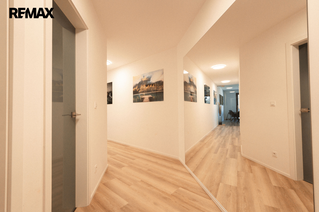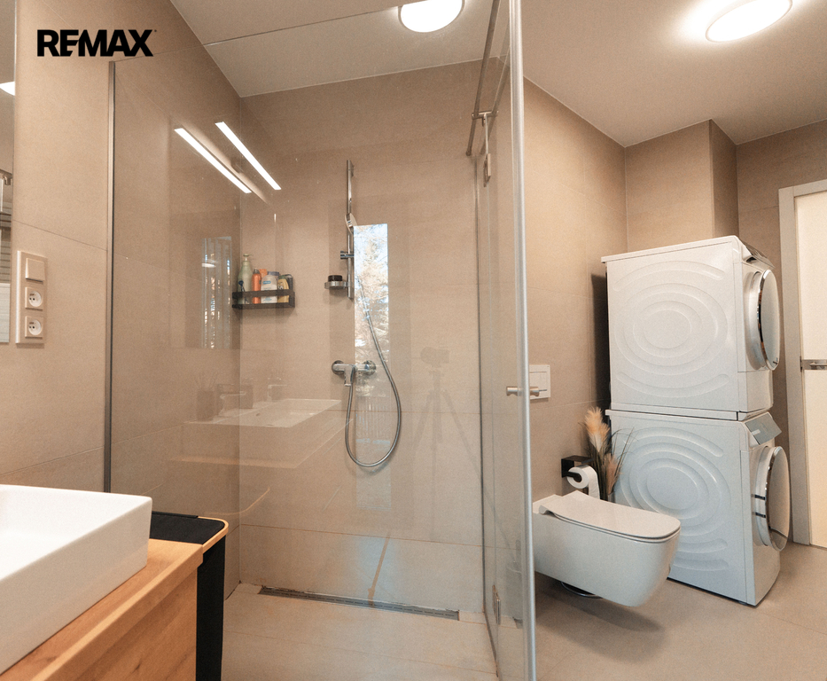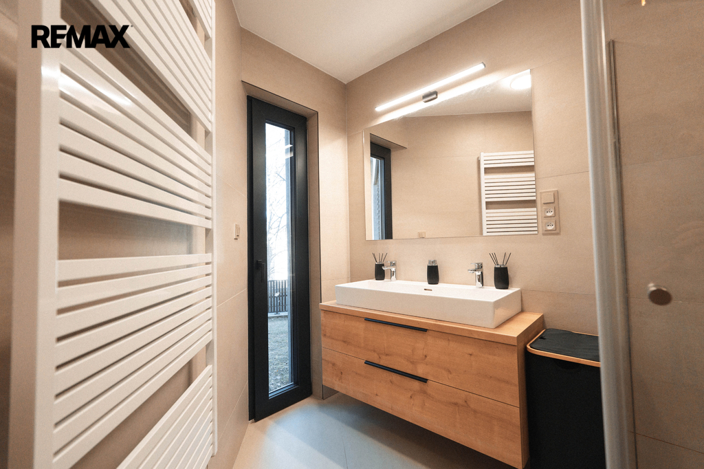 Tento byt představuje vzácnou příležitost ke koupi nemovitosti, která v sobě snoubí kvalitu rodinného domu s komfortem a bezpečím moderního bytového komplexu.