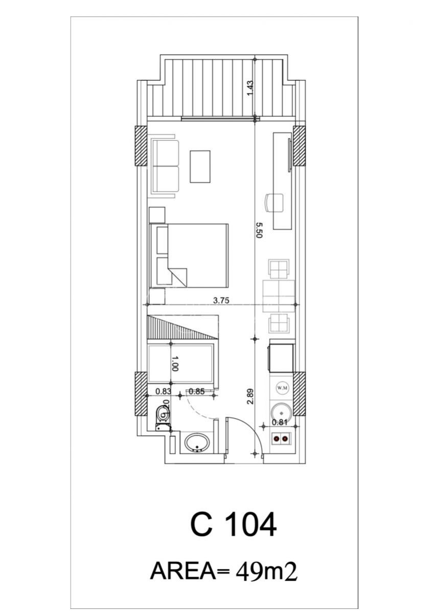 | Dispozice/podlahová plocha: | 1+kk/49 m² |