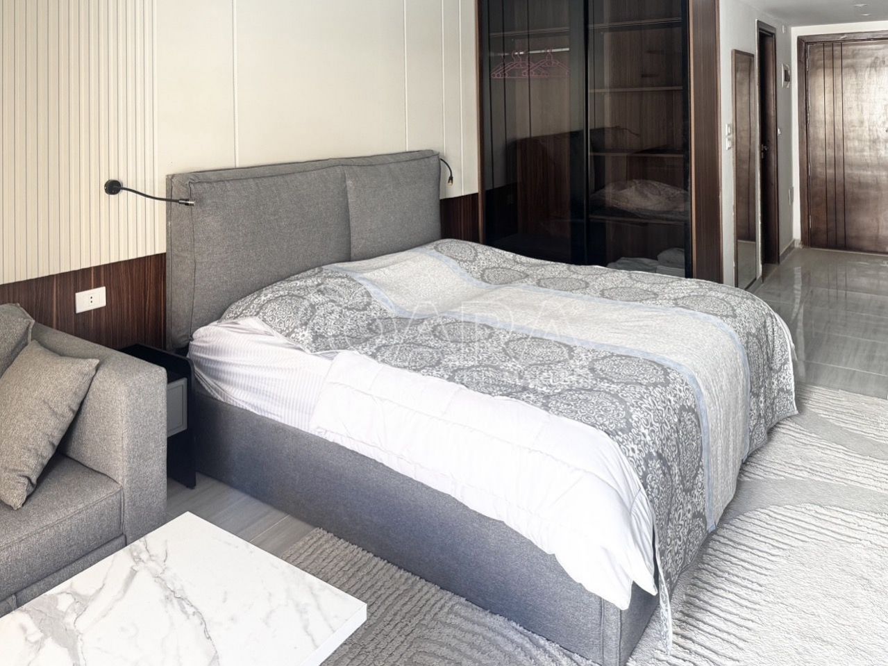 Kompletně vybavený byt 1+kk s balkonem, výhled na bazén v Al Hambra 1st Avenue