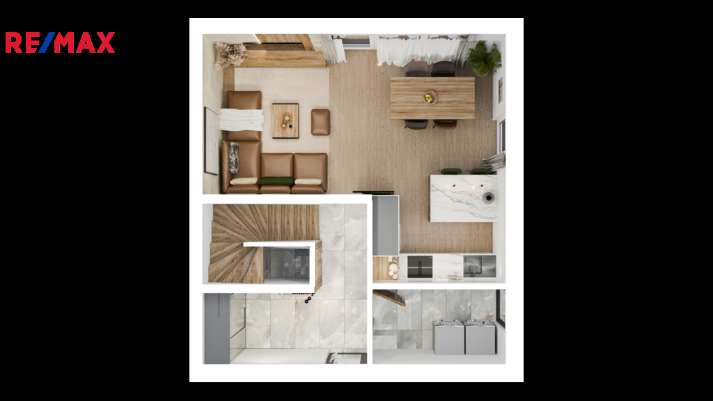 Dokončení interiéru probíhá dle výběru klienta v rámci standardů developera, které zahrnují podlahové krytiny, velkoformátové dlažby, interiérové dveře a dubové schodiště. V ceně je zahrnuta i moderní kuchyňský linka bez spotřebičů i kompletně vybavená koupelna s designovým podsvíceným zrcadlem.