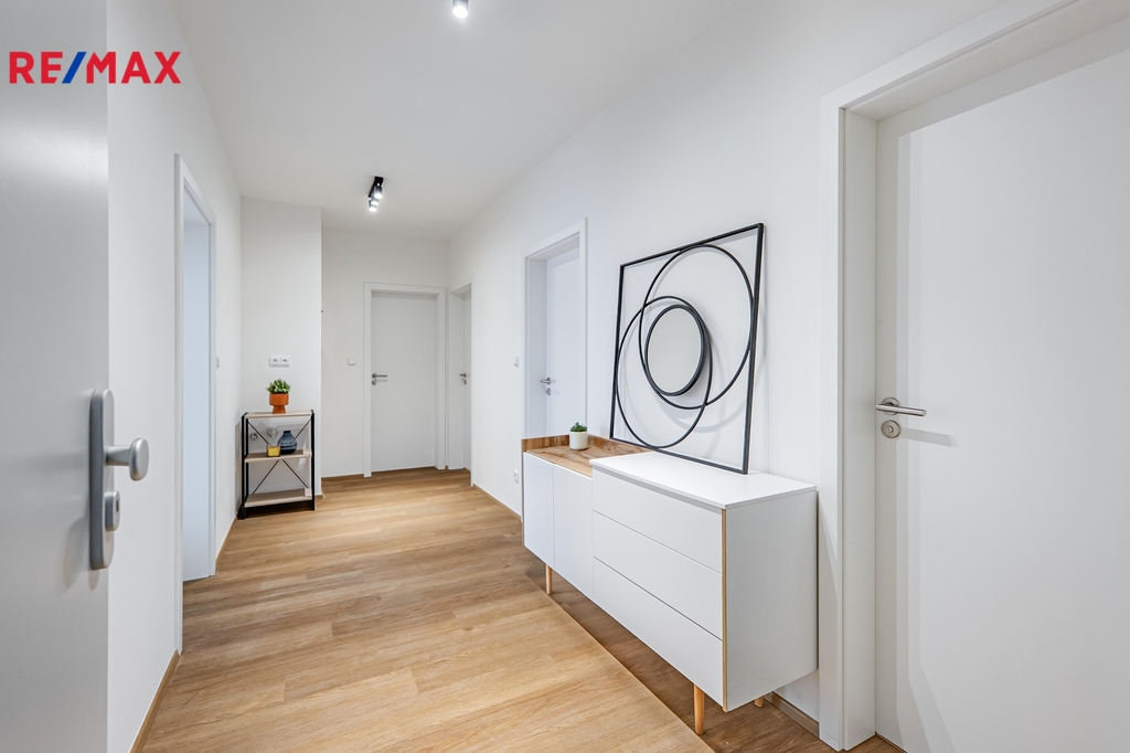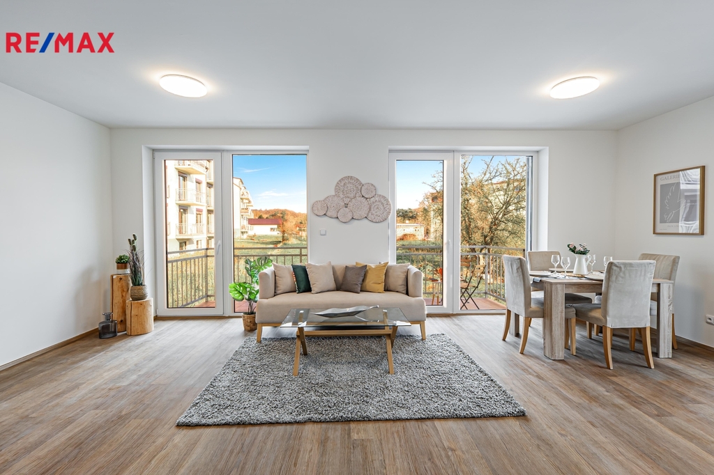 Byt se nachází v přízemí, dům je však situován ve svahu, což zajišťuje dostatek světla, soukromí a vzdušnosti. Komfort bydlení zvyšují okna s trojskly, venkovní žaluzie na všech oknech, podlahové topení v celém bytě a kvalitní vinylová podlahová krytina. Díky energetické třídě B jsou měsíční náklady velmi nízké – do 5.500 Kč.