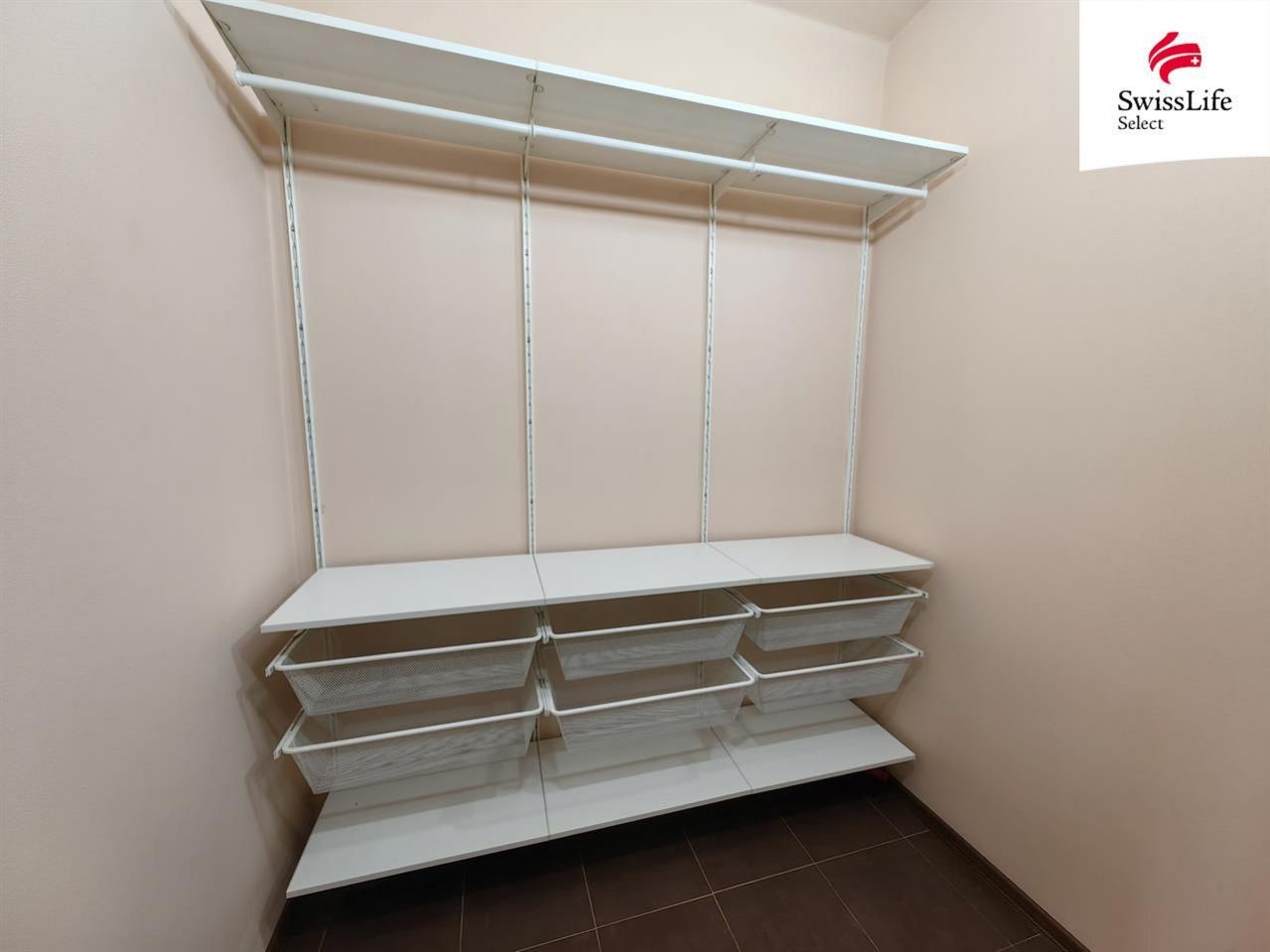 Součástí bytu je také šatna, která poskytuje dostatek úložného prostoru, a sklepní prostor. Vytápění je zajištěno kotlem na tuhá paliva, což garantuje efektivní a bezpečný provoz. K bytu náleží garáž přímo u domu, kterou oceníte zejména v zimních měsících.