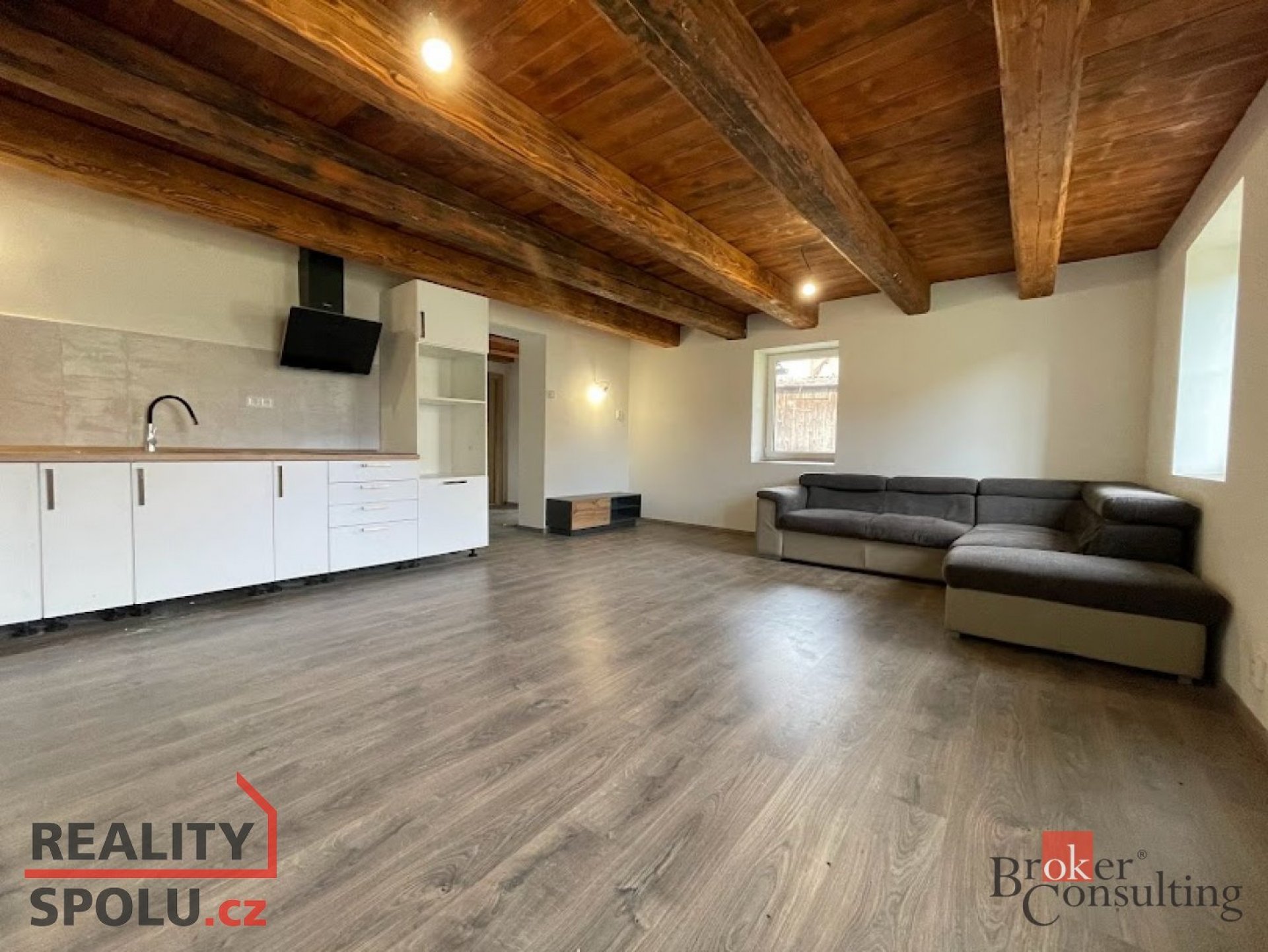 - prostorný obývací pokoj s moderním kuchyňským koutem – ideální místo pro rodinná setkání,