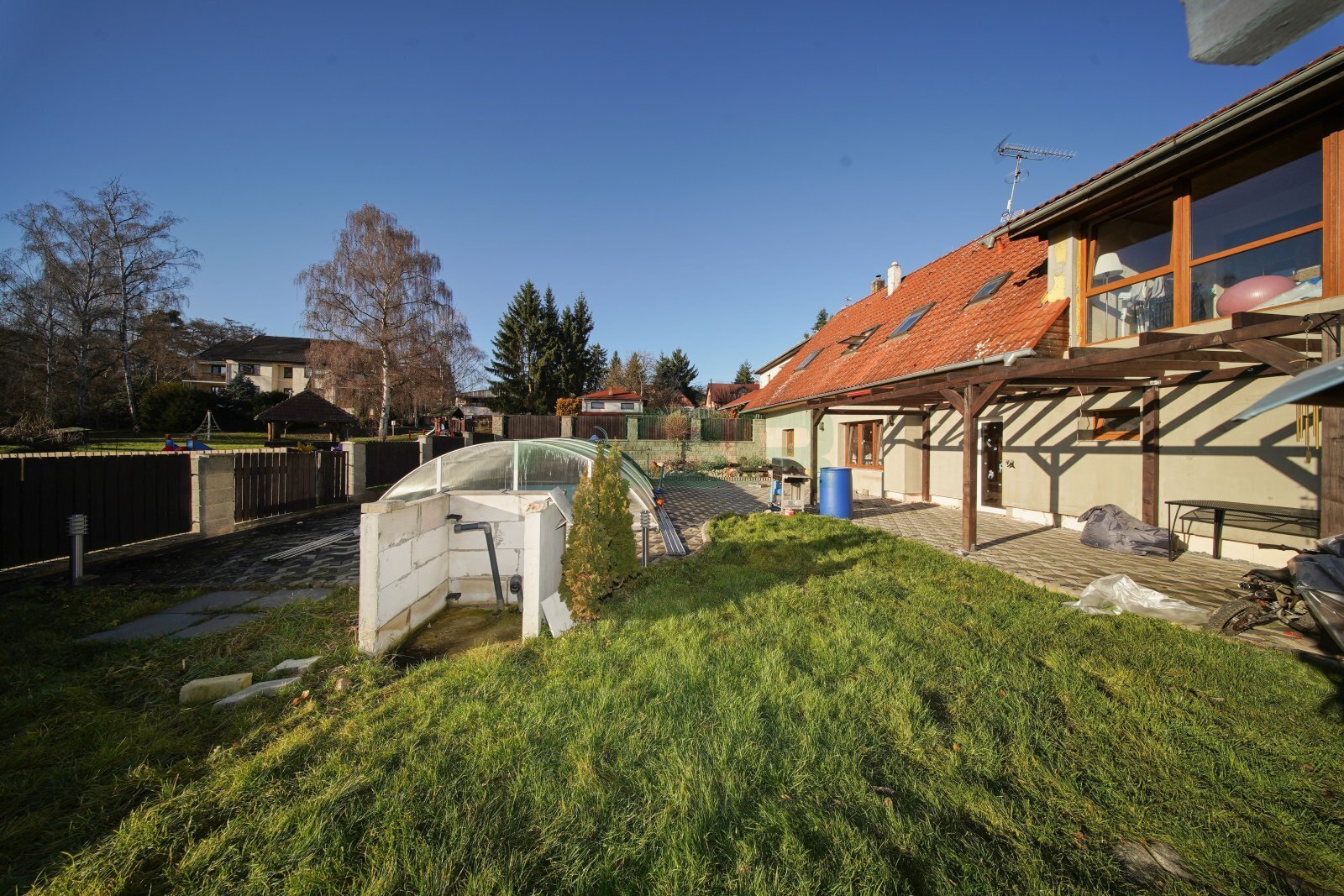 Dům původně z roku 1920, smíšená stavba cihla + kámen. V roce 2005 nová střecha včetně krovů a oken, udělány drenáže kolem domu. V 1.NP plastová okna, ve 2.NP dřevěná střešní okna. Dům je zateplený polystyrenem + stěrka. V ložnicích vinylové podlahy, v obývacím pokoji PVC imitace plovoucí podlahy, jinak dlažby. Interiery domu jsou k rekonstrukci, včetně nutné rekonstrukce elektřiny. Nemovitost napojena na obecní vodovod, tlakovou kanalizaci včetně nové přípojky a kalového čerpadla. Elektřina 400V. Vytápění a ohřev vody plynovým kotlem, z plynového zásobníku umístěného na pozemku - (zásobník se plní cca jednou za 9 měsíců). Možnost užívání obecní studny s užitkovou vodou na hranici pozemku. V domě funkční sauna. V přední části domu parkování se zámkovou dlažbou pro více vodzidel s příjezdovou bránou na elektřický pohon. V zadní části domu terasa se zahradou a bazénem 3x7 m, hloubkou 1,2m, s posuvným krytím, s pískovou filtrac a ÚV lampou. Bazén je z r. 2014. Plot - betonové sloupky vč. dřevěných latí cca 12 let. Roční náklady na provoz domu 48.000,-Kč plyn, 25.000,-Kč elektřina. Na vedlejším pozemku vedle domu hřiště s přístupem ze zahrady. V blízkosti domu obchod, 200 m od domu atoubusová zastávka bus č. 314, 37 min na Smíchovské nádraží. V obci Pošta, Mateřská škola, 2x hospoda, fotbalové hřiště a Obecní úřad. Základní škola leží v 5 km vzdálené Davli. Krásné okolí, lesy, cyklistické a turistické stezky. Možnost hypotéky.