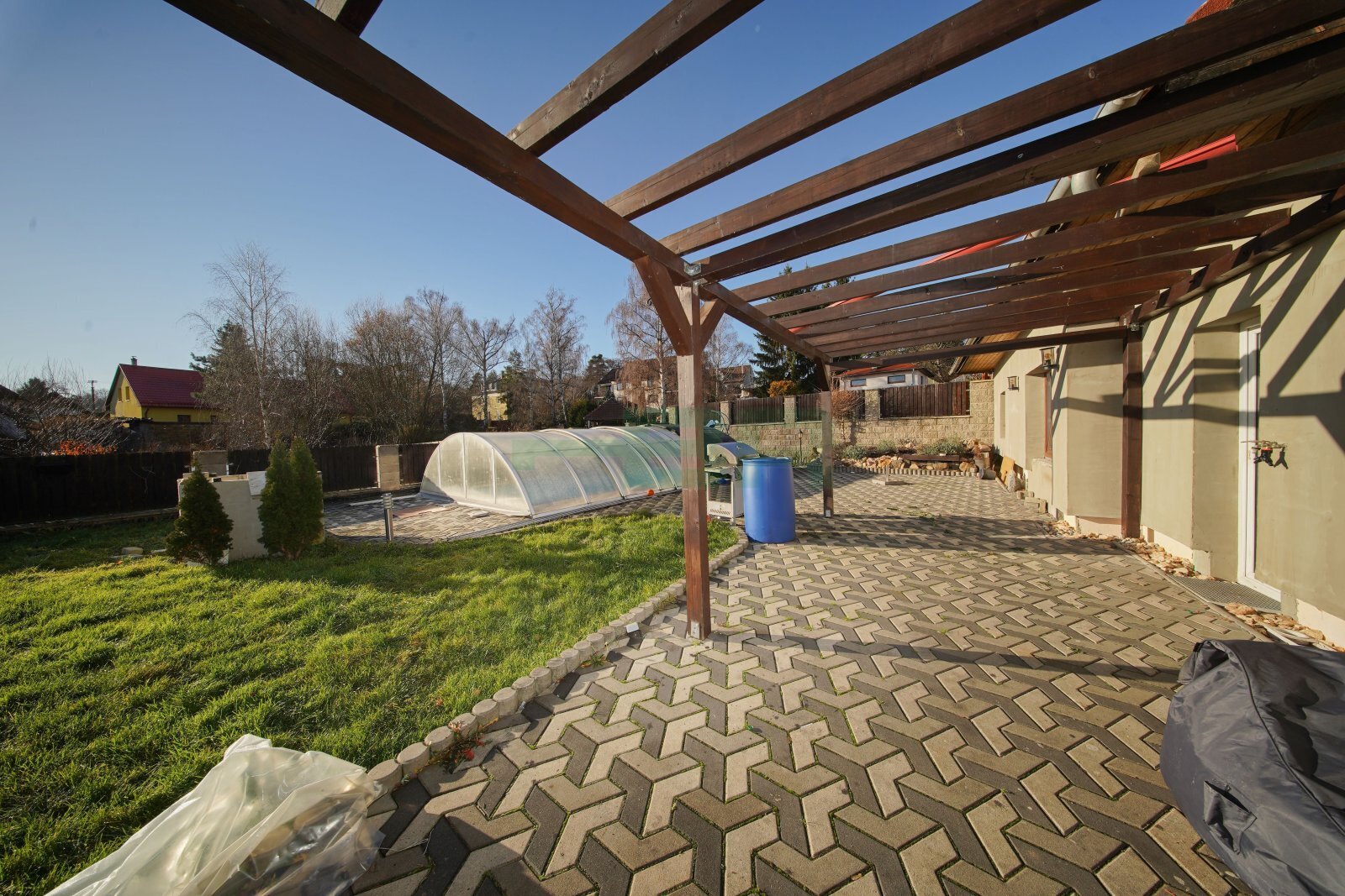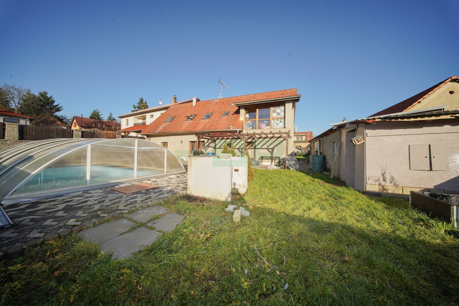 Dům původně z roku 1920, smíšená stavba cihla + kámen. V roce 2005 nová střecha včetně krovů a oken, udělány drenáže kolem domu. V 1.NP plastová okna, ve 2.NP dřevěná střešní okna. Dům je zateplený polystyrenem + stěrka. V ložnicích vinylové podlahy, v obývacím pokoji PVC imitace plovoucí podlahy, jinak dlažby. Interiery domu jsou k rekonstrukci, včetně nutné rekonstrukce elektřiny. Nemovitost napojena na obecní vodovod, tlakovou kanalizaci včetně nové přípojky a kalového čerpadla. Elektřina 400V. Vytápění a ohřev vody plynovým kotlem, z plynového zásobníku umístěného na pozemku - (zásobník se plní cca jednou za 9 měsíců). Možnost užívání obecní studny s užitkovou vodou na hranici pozemku. V domě funkční sauna. V přední části domu parkování se zámkovou dlažbou pro více vodzidel s příjezdovou bránou na elektřický pohon. V zadní části domu terasa se zahradou a bazénem 3x7 m, hloubkou 1,2m, s posuvným krytím, s pískovou filtrac a ÚV lampou. Bazén je z r. 2014. Plot - betonové sloupky vč. dřevěných latí cca 12 let. Roční náklady na provoz domu 48.000,-Kč plyn, 25.000,-Kč elektřina. Na vedlejším pozemku vedle domu hřiště s přístupem ze zahrady. V blízkosti domu obchod, 200 m od domu atoubusová zastávka bus č. 314, 37 min na Smíchovské nádraží. V obci Pošta, Mateřská škola, 2x hospoda, fotbalové hřiště a Obecní úřad. Základní škola leží v 5 km vzdálené Davli. Krásné okolí, lesy, cyklistické a turistické stezky. Možnost hypotéky.