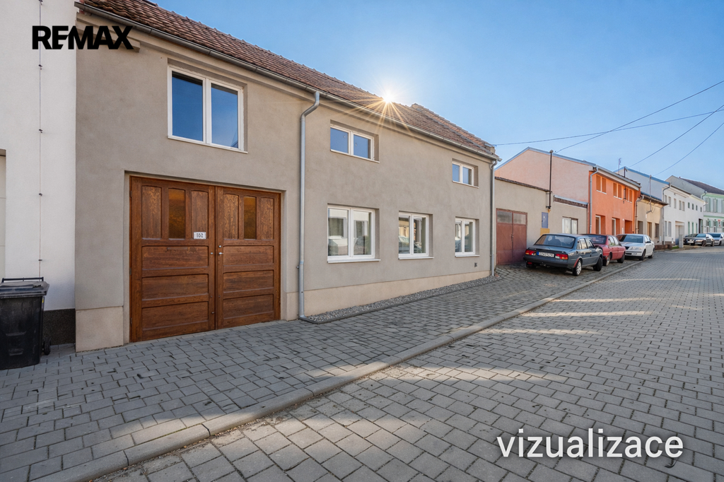 Dům pro milovníky aut a motorů – garáže až pro 6 vozů, dílna a průjezd na dvůr | Chvalkovice na Hané