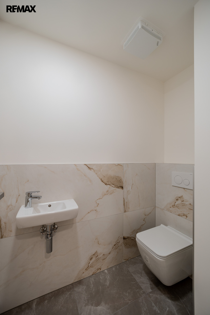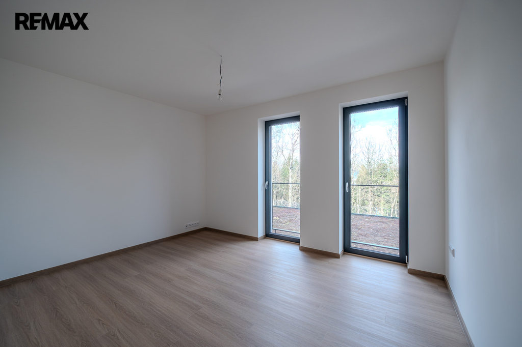 Dominantou bytu je obývací prostor s kuchyňským koutem a přímým vstupem na balkon, odkud si můžete vychutnat krásný výhled do okolní přírody. Luxusní provedení interiéru zahrnuje kvalitní materiály, podlahové vytápění pro maximální komfort a velkoformátová okna, která zajišťují dostatek denního světla.