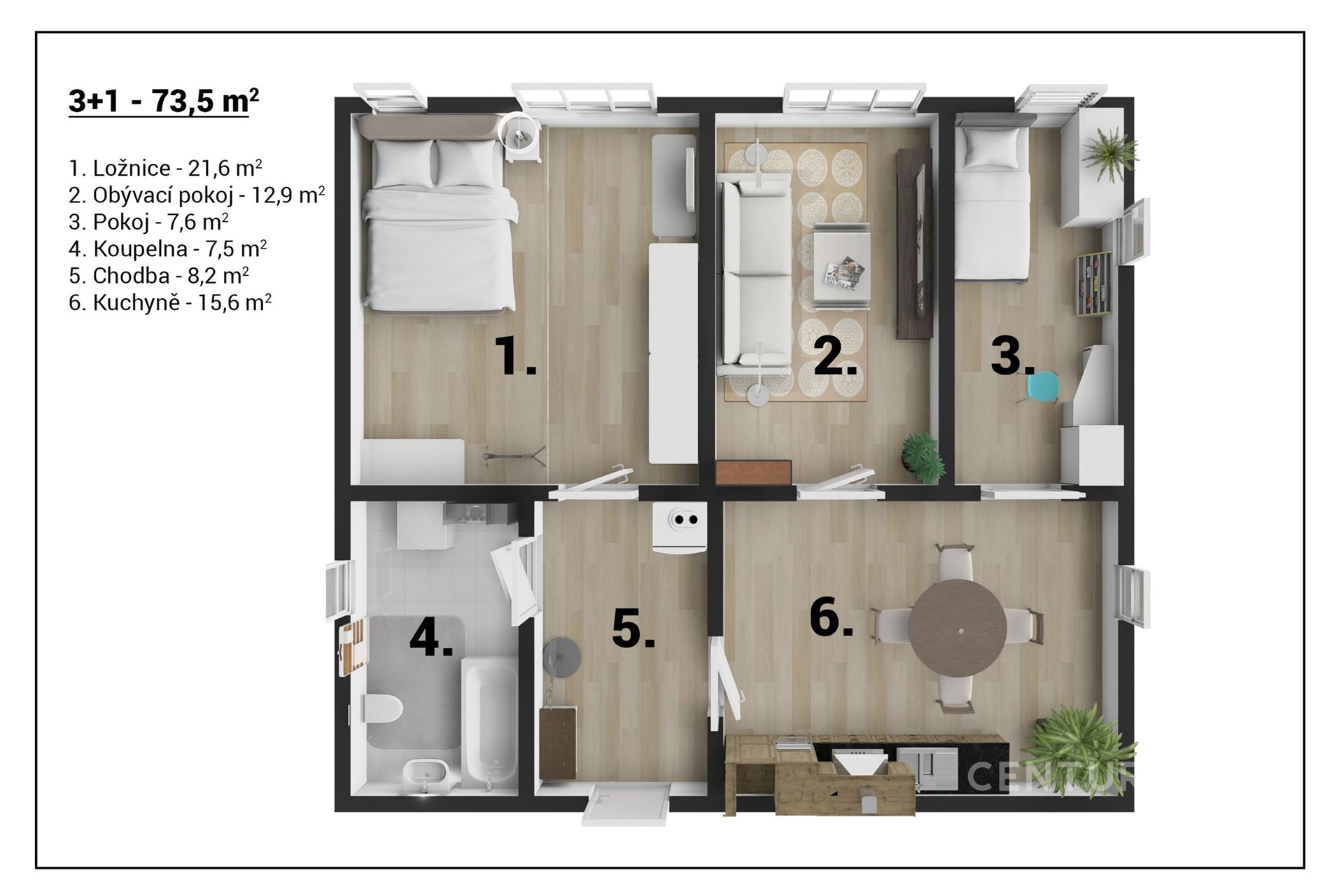 - Dispozice bytu: 3+1