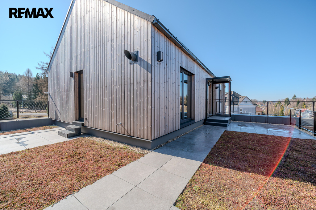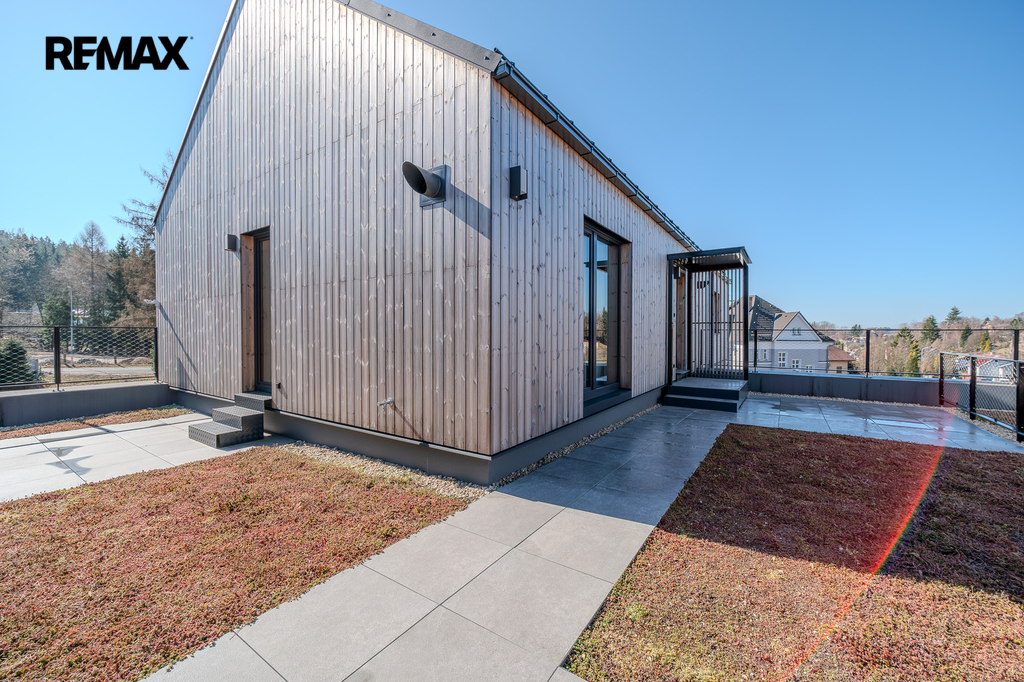 Tento dům představuje ideální kombinaci moderního bydlení, soukromí a přírody.