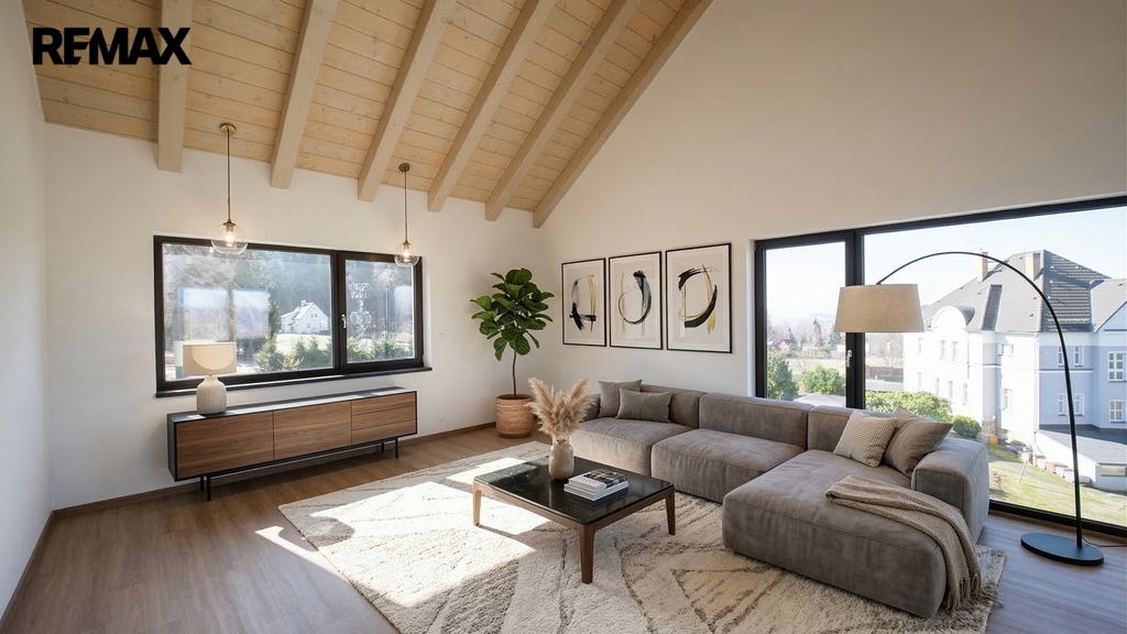 Dům vás okouzlí svou nadčasovou dispozicí a důrazem na detail. Hlavní obytný prostor je prosvětlen díky velkoformátovým francouzským oknům, která přinášejí dostatek denního světla a zároveň otevírají krásný výhled do okolní zeleně. Interiér působí vzdušně a elegantně, ideální pro náročné klienty. Výhodou je možnost dalšího rozšíření o podkroví.