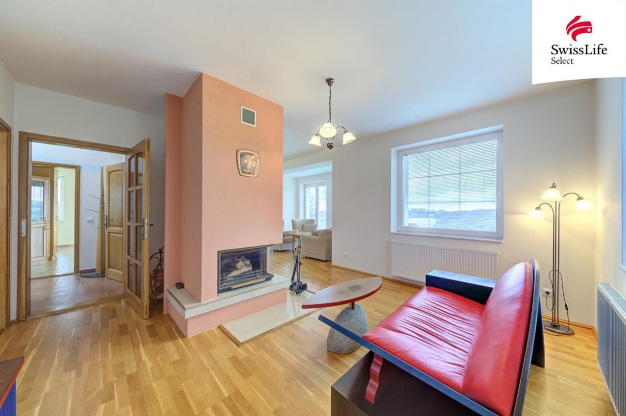 V přízemí domu je vstupní část, kuchyň se zánovní kuchyňskou linkou s vestavnými spotřebiči, obývací pokoj s krbem, jídelna a další pokoj, koupelna se sprchovým koutem a toaletou, technická místnost. V přízemí je podlahové teplovodní vytápění v koupelně a v kuchyni. Do horního patra domu vystoupáme po krásných dřevěných schodech. V patře jsou další tři pokoje s balkónky, každý pokoj má koupelnu se sprchovým koutem a toaletou. Pokoje mají masivní dřevěné podlahy.