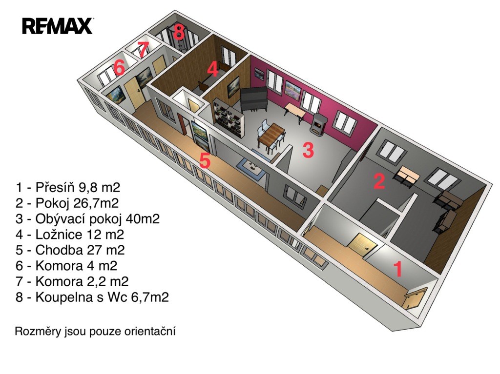 • Potenciál: Nabídka představuje skvělou příležitost pro kreativní jedince, kteří touží po klidném azylu s inspirativní atmosférou. Přestože k nemovitosti nenáleží zahrada, v současné době probíhá jednání o dokoupení sousedního pozemku, což by budoucím majitelům umožnilo nemovitost rozšířit.