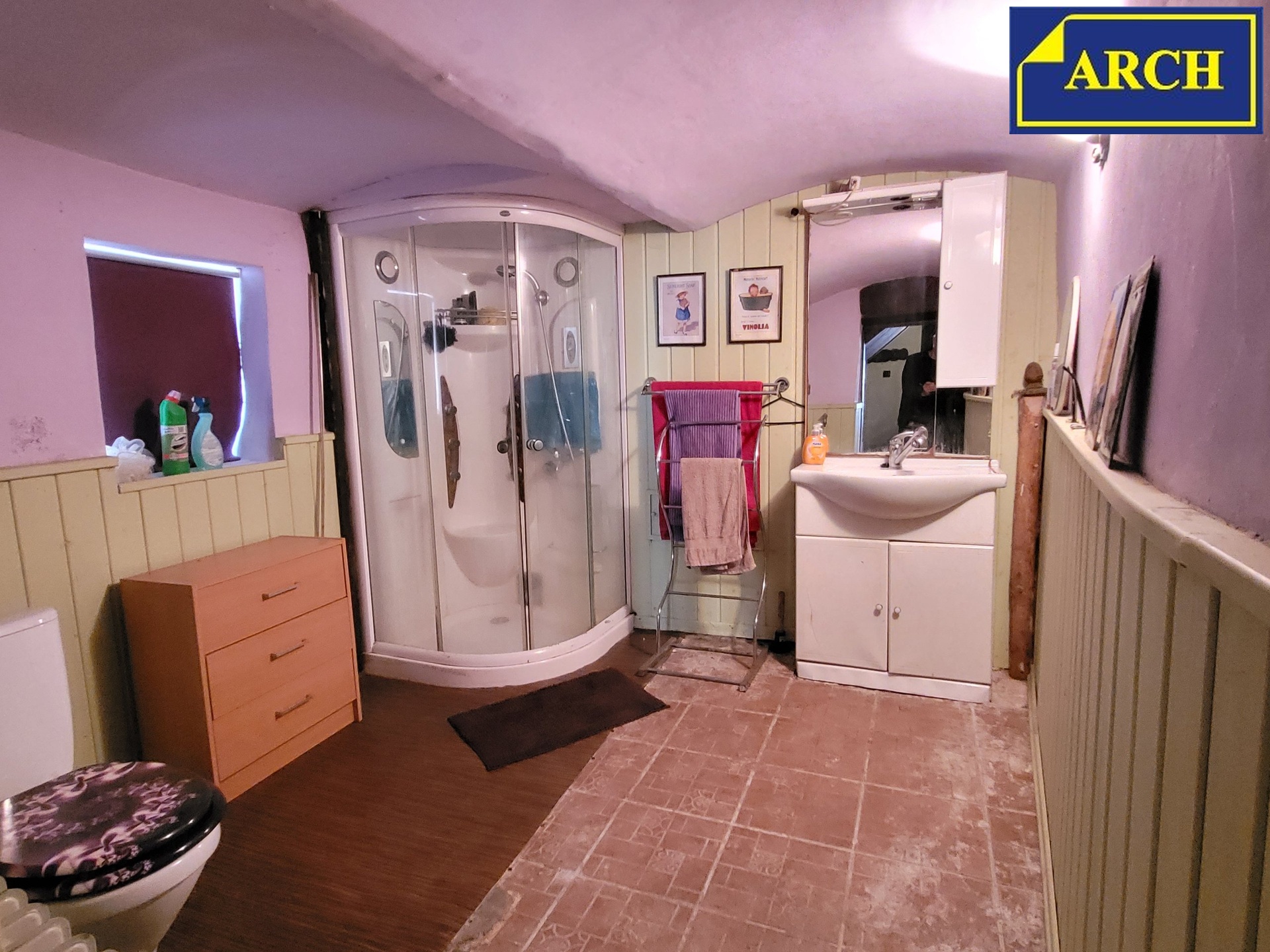 Koupelna v přízemí je vybavená sprchovým koutem, umývadlem a WC. Ohřev TUV pro koupelnu zajišťuje el. bojler. Kuchyňský kout v 1.patře je vybavený starší kuchyňskou linkou s dřezem a běžným el. sporákem. Ohřev TUV pro kuch. kout zajišťuje malý el. průtokový ohřívač.
